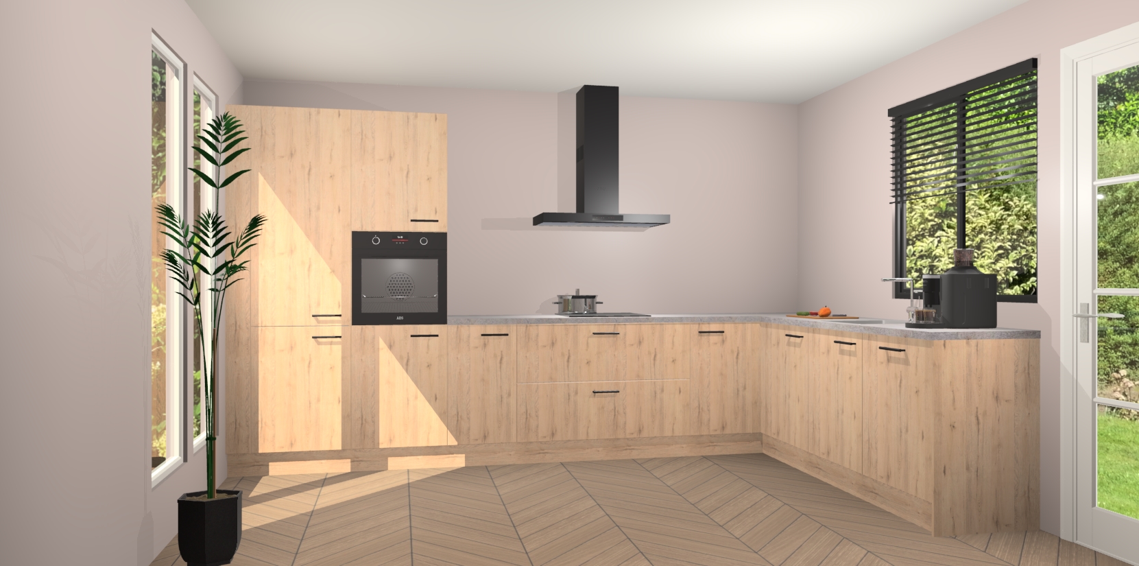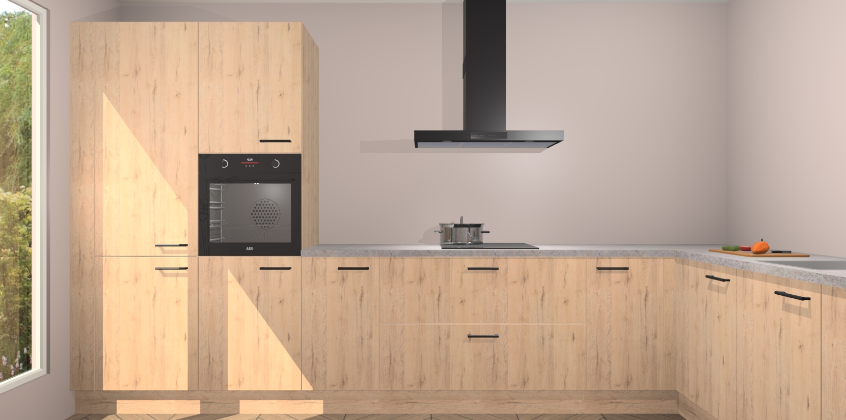Met een modern, tijdloos design en ruime opslagruimte, zult u zich in no-time thuis voelen in uw nieuwe keuken. Uw leven wordt eenvoudiger met de soft-close deuren die voor het ultieme stille comfort zorgen - geen geluid dat u stoort terwijl u kookt. Ook is de keuken voorzien van 5 ingebouwde apparaten: een oven, inductie kookplaat, afzuigkap, vaatwasser en koelkast. Deze kunnen gemakkelijk na bestelling worden bijgewerkt naar AEG - waardoor uw luxe ervaring compleet is.