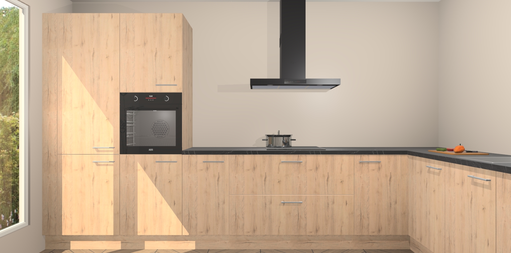 Met een modern, tijdloos design en ruime opslagruimte, zult u zich in no-time thuis voelen in uw nieuwe keuken. Uw leven wordt eenvoudiger met de soft-close deuren die voor het ultieme stille comfort zorgen - geen geluid dat u stoort terwijl u kookt. Ook is de keuken voorzien van 5 ingebouwde apparaten: een oven, inductie kookplaat, afzuigkap, vaatwasser en koelkast. Deze kunnen gemakkelijk na bestelling worden bijgewerkt naar AEG - waardoor uw luxe ervaring compleet is.