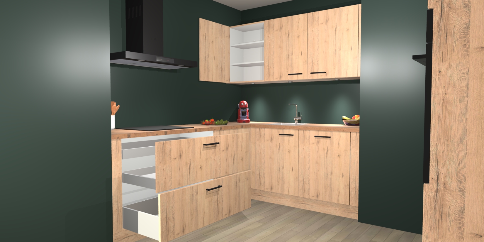 In deze box zijn alle kleuren verzameld van de deuren en werkbladen. Vraag de gratis kleurenbox aan en kijk thuis rustig verder!