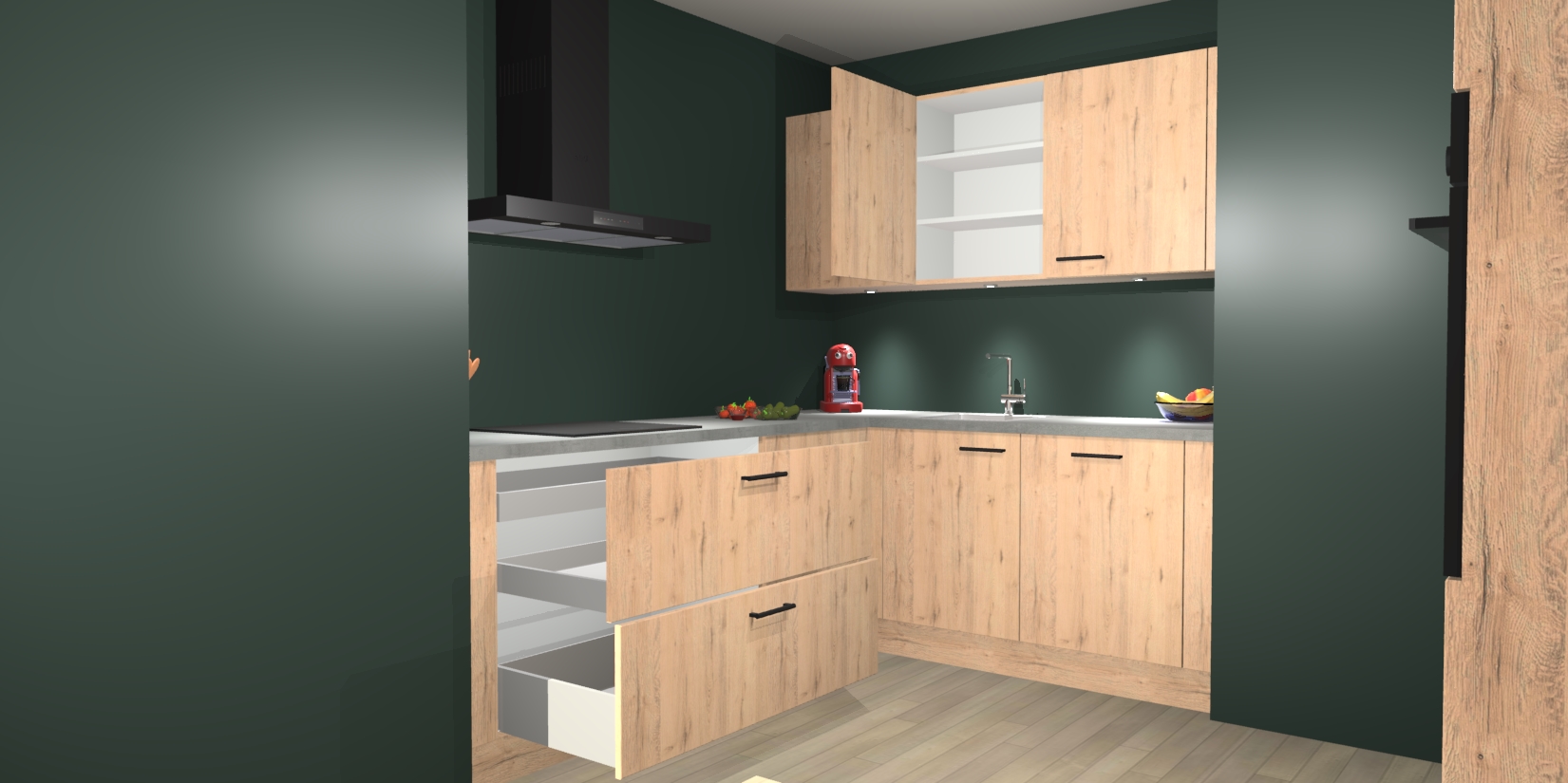 In deze box zijn alle kleuren verzameld van de deuren en werkbladen. Vraag de gratis kleurenbox aan en kijk thuis rustig verder!