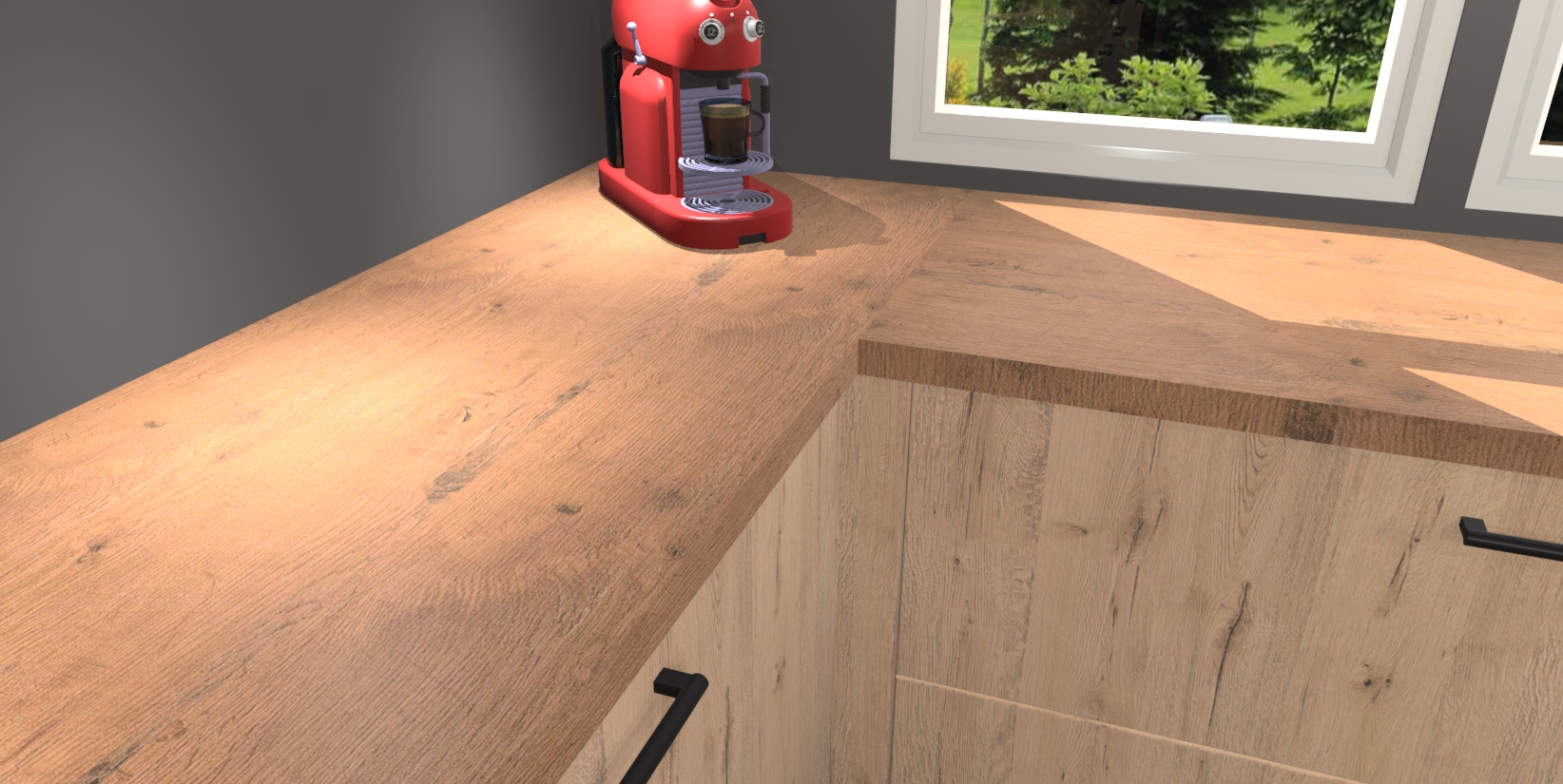 - Bij een hoekwerkblad zijn de hoeken in gevreesd en op maat gemaakt