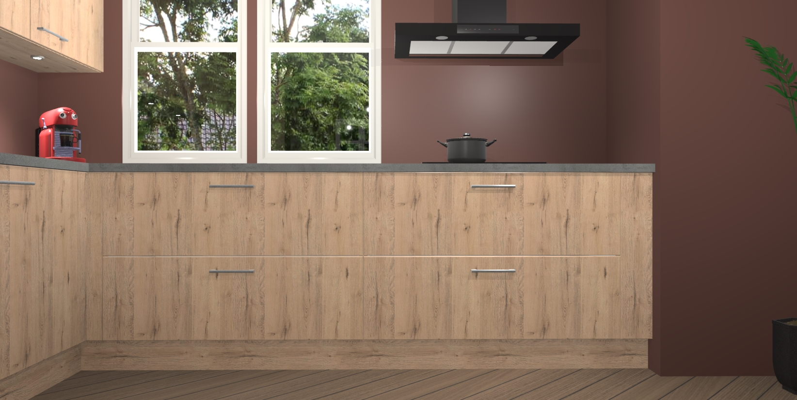Inclusief plinten, stelpoten en werkblad