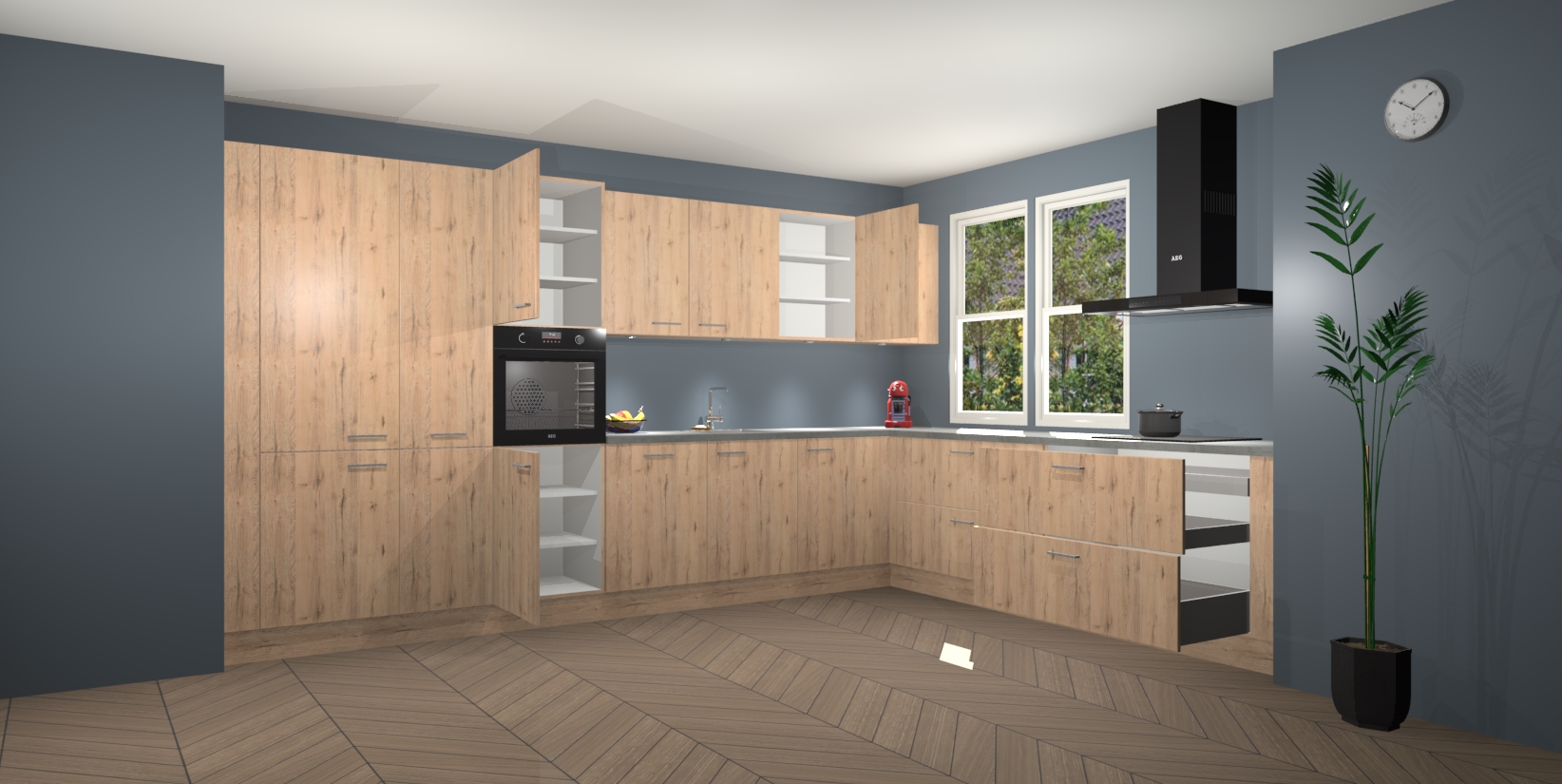 Inclusief plinten, stelpoten en werkblad