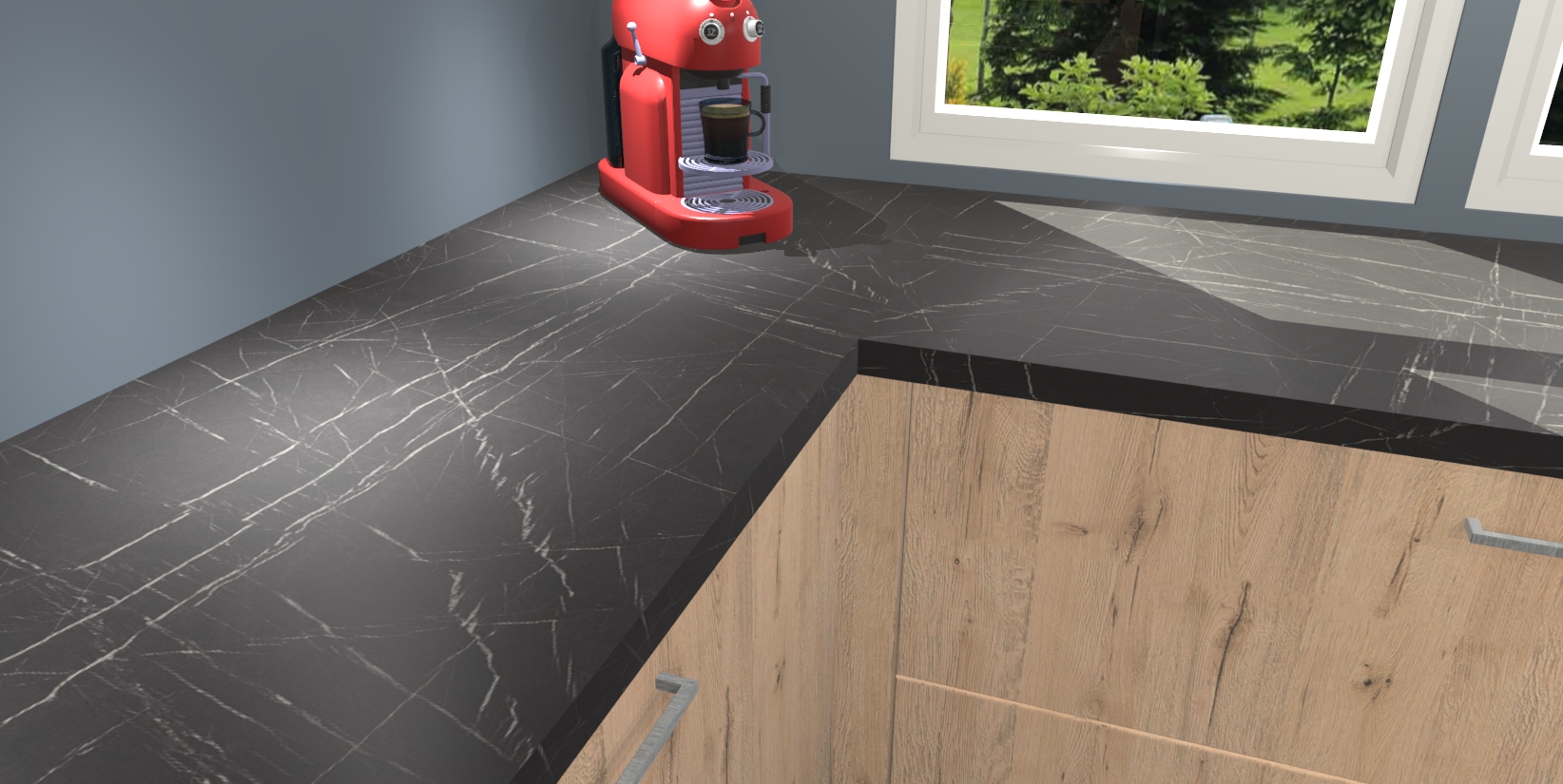 - Bij een hoekwerkblad zijn de hoeken in gevreesd en op maat gemaakt