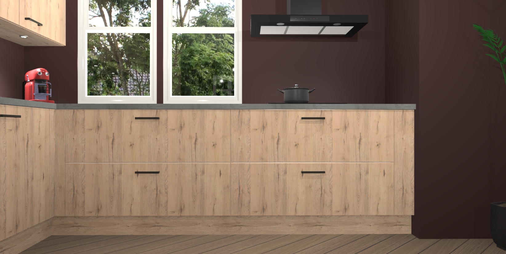 Inclusief plinten, stelpoten en werkblad
