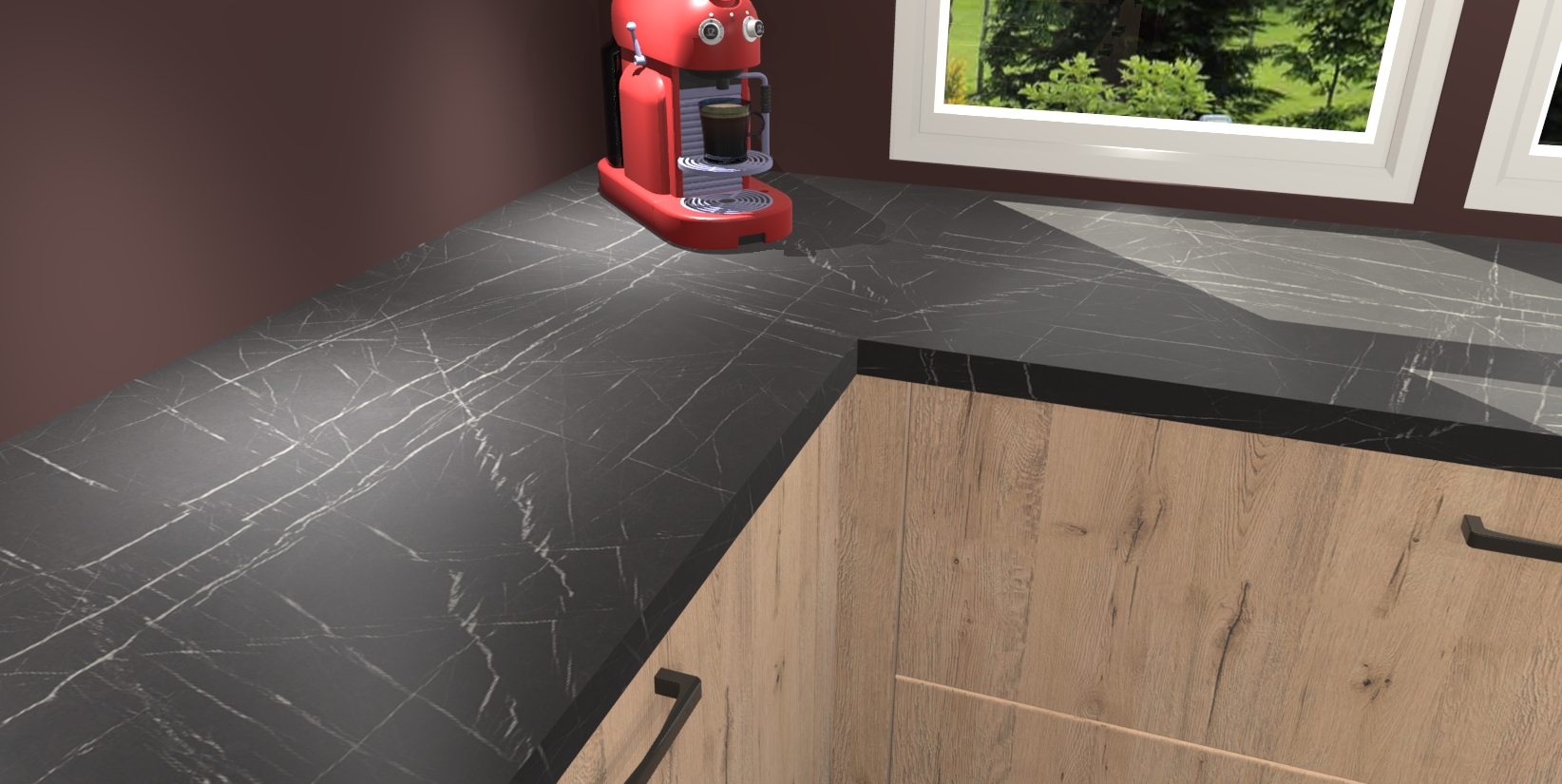 - Bij een hoekwerkblad zijn de hoeken in gevreesd en op maat gemaakt