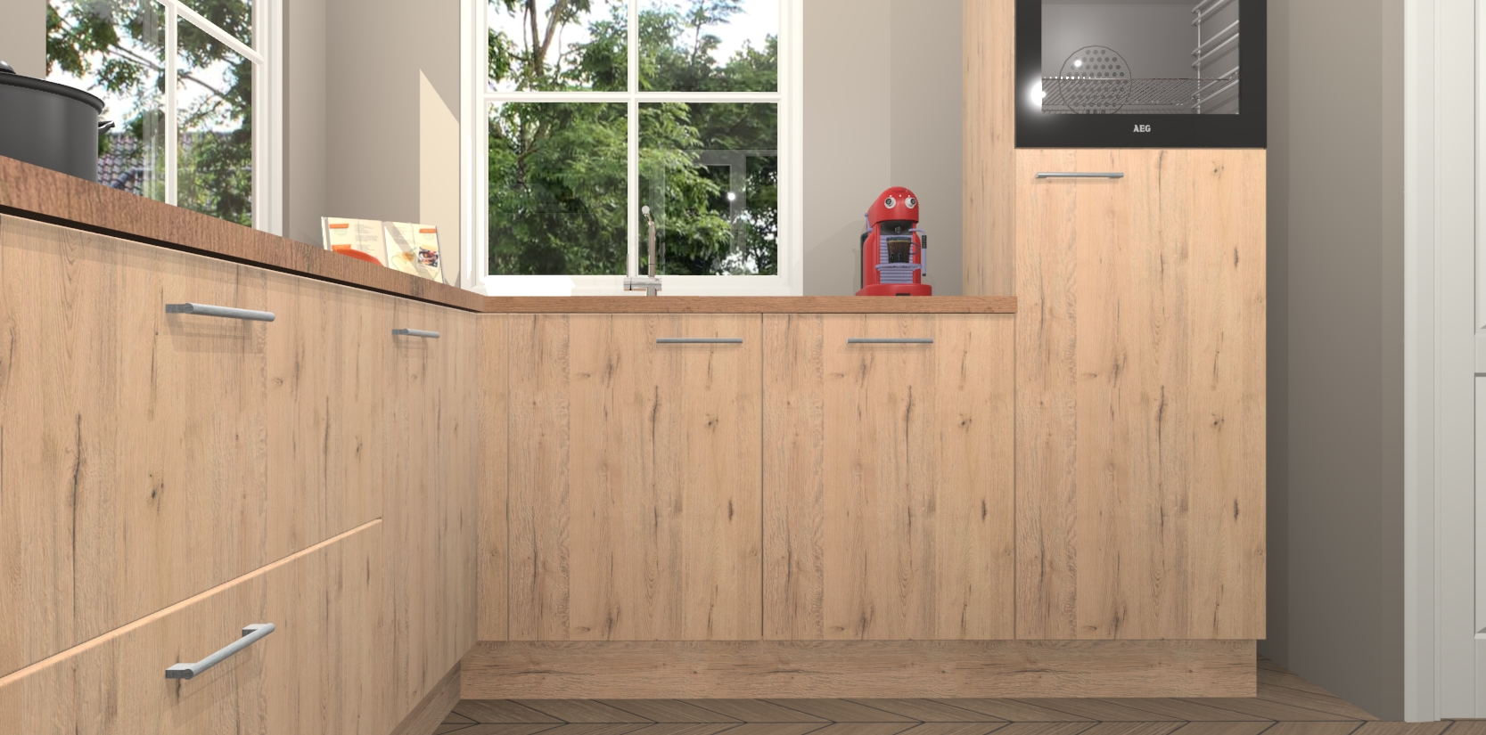 De Madera Natuur keuken Pai bevat vijf essentiële inbouwapparaten - een oven, inductiekookplaat, afzuigkap, vaatwasser en koelkast - zodat u er na levering meteen in kunt. Voor de slimme kopers die weten dat apparaten vaak het verschil kunnen maken tussen functioneel en luxueus, bieden we eenvoudige upgradeopties naar AEG, van oven naar combimagnetron na bestelling of naar een kookplaat met geïntrigeerde afzuiging. En met onze vaste lage prijs en snelle levering binnen zeven weken vanaf de orderbevestiging hoeft u zich geen zorgen te maken over verborgen kosten of lange levertijden die uw droomkeuken kunnen vertragen.