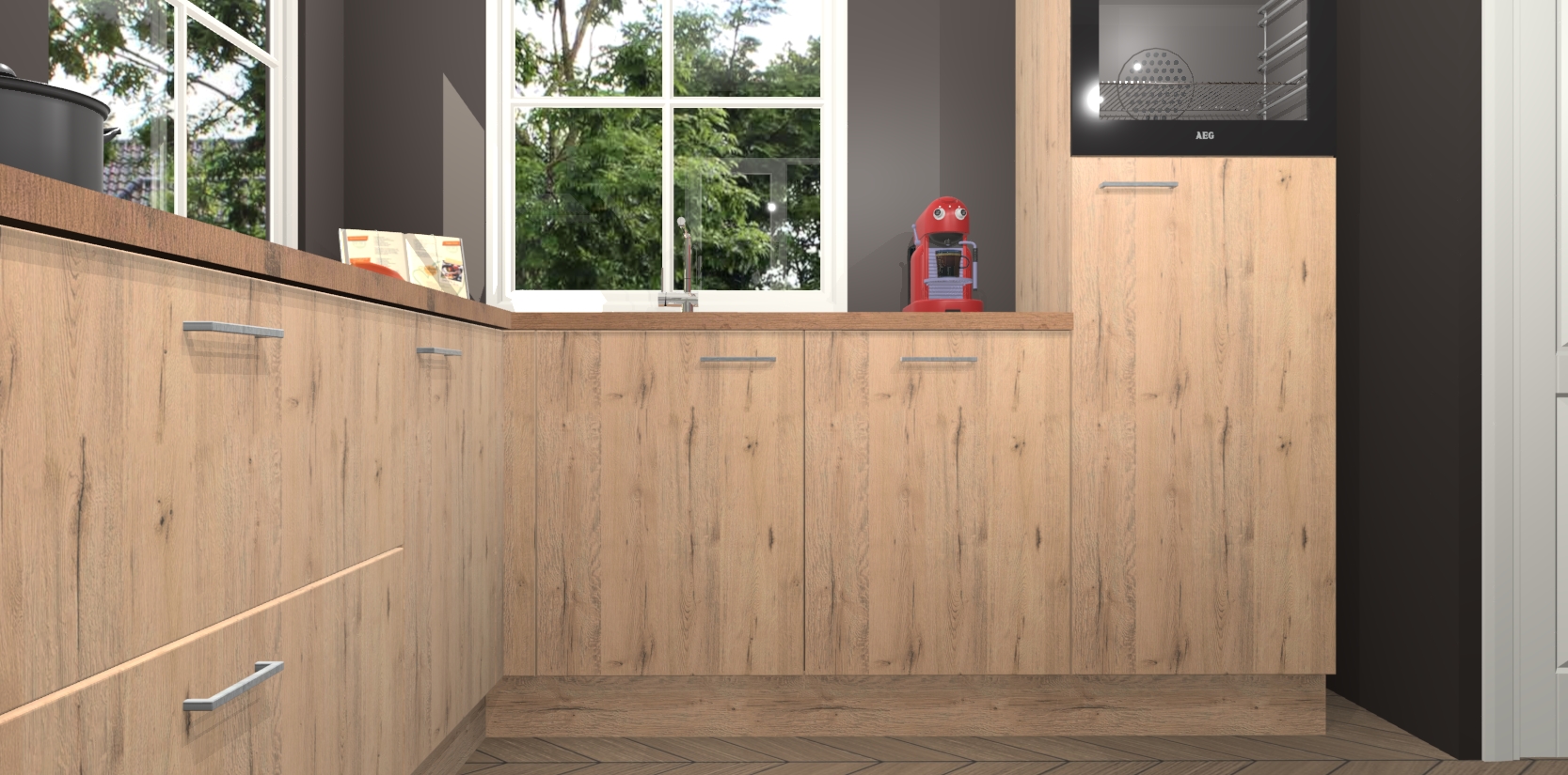 De Madera Natuur keuken Pai bevat vijf essentiële inbouwapparaten - een oven, inductiekookplaat, afzuigkap, vaatwasser en koelkast - zodat u er na levering meteen in kunt. Voor de slimme kopers die weten dat apparaten vaak het verschil kunnen maken tussen functioneel en luxueus, bieden we eenvoudige upgradeopties naar AEG, van oven naar combimagnetron na bestelling of naar een kookplaat met geïntrigeerde afzuiging. En met onze vaste lage prijs en snelle levering binnen zeven weken vanaf de orderbevestiging hoeft u zich geen zorgen te maken over verborgen kosten of lange levertijden die uw droomkeuken kunnen vertragen.