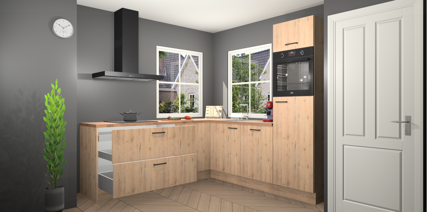 De Madera Natuur keuken Pai bevat vijf essentiële inbouwapparaten - een oven, inductiekookplaat, afzuigkap, vaatwasser en koelkast - zodat u er na levering meteen in kunt. Voor de slimme kopers die weten dat apparaten vaak het verschil kunnen maken tussen functioneel en luxueus, bieden we eenvoudige upgradeopties naar AEG, van oven naar combimagnetron na bestelling of naar een kookplaat met geïntrigeerde afzuiging. En met onze vaste lage prijs en snelle levering binnen zeven weken vanaf de orderbevestiging hoeft u zich geen zorgen te maken over verborgen kosten of lange levertijden die uw droomkeuken kunnen vertragen.