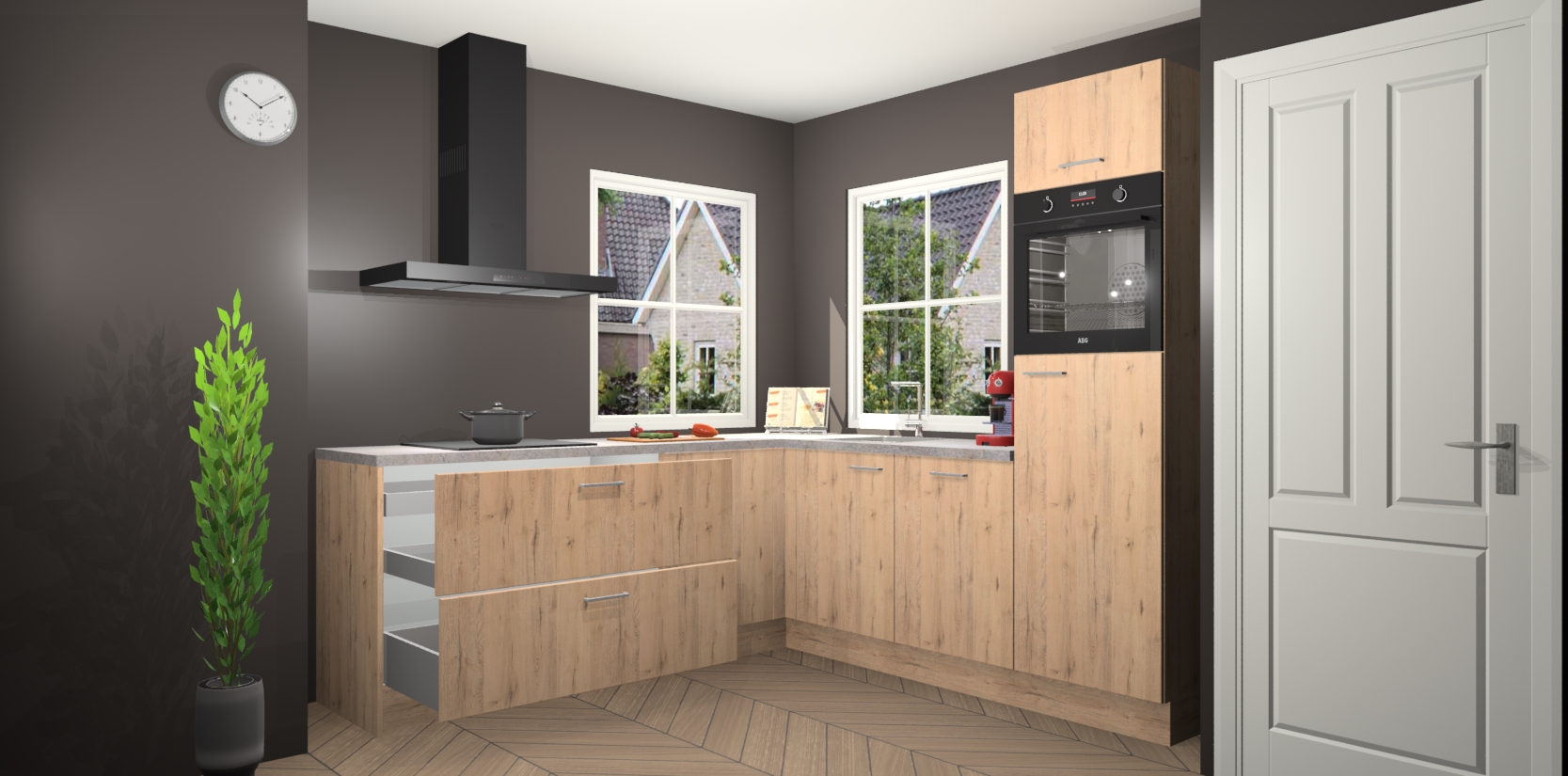 De Madera Natuur keuken Pai bevat vijf essentiële inbouwapparaten - een oven, inductiekookplaat, afzuigkap, vaatwasser en koelkast - zodat u er na levering meteen in kunt. Voor de slimme kopers die weten dat apparaten vaak het verschil kunnen maken tussen functioneel en luxueus, bieden we eenvoudige upgradeopties naar AEG, van oven naar combimagnetron na bestelling of naar een kookplaat met geïntrigeerde afzuiging. En met onze vaste lage prijs en snelle levering binnen zeven weken vanaf de orderbevestiging hoeft u zich geen zorgen te maken over verborgen kosten of lange levertijden die uw droomkeuken kunnen vertragen.