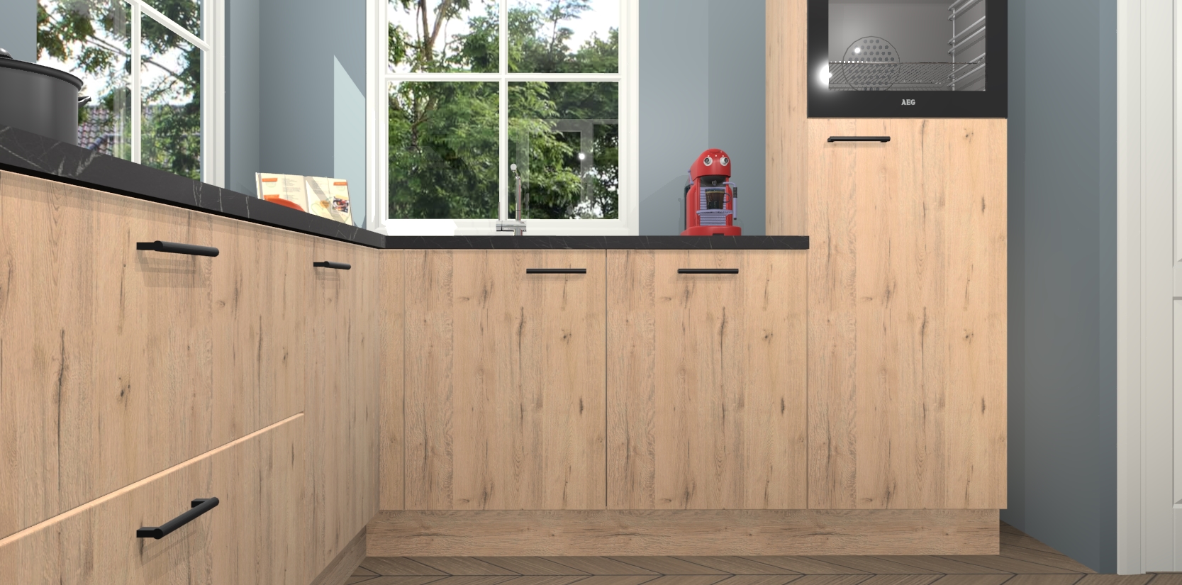 De Madera Natuur keuken Pai bevat vijf essentiële inbouwapparaten - een oven, inductiekookplaat, afzuigkap, vaatwasser en koelkast - zodat u er na levering meteen in kunt. Voor de slimme kopers die weten dat apparaten vaak het verschil kunnen maken tussen functioneel en luxueus, bieden we eenvoudige upgradeopties naar AEG, van oven naar combimagnetron na bestelling of naar een kookplaat met geïntrigeerde afzuiging. En met onze vaste lage prijs en snelle levering binnen zeven weken vanaf de orderbevestiging hoeft u zich geen zorgen te maken over verborgen kosten of lange levertijden die uw droomkeuken kunnen vertragen.