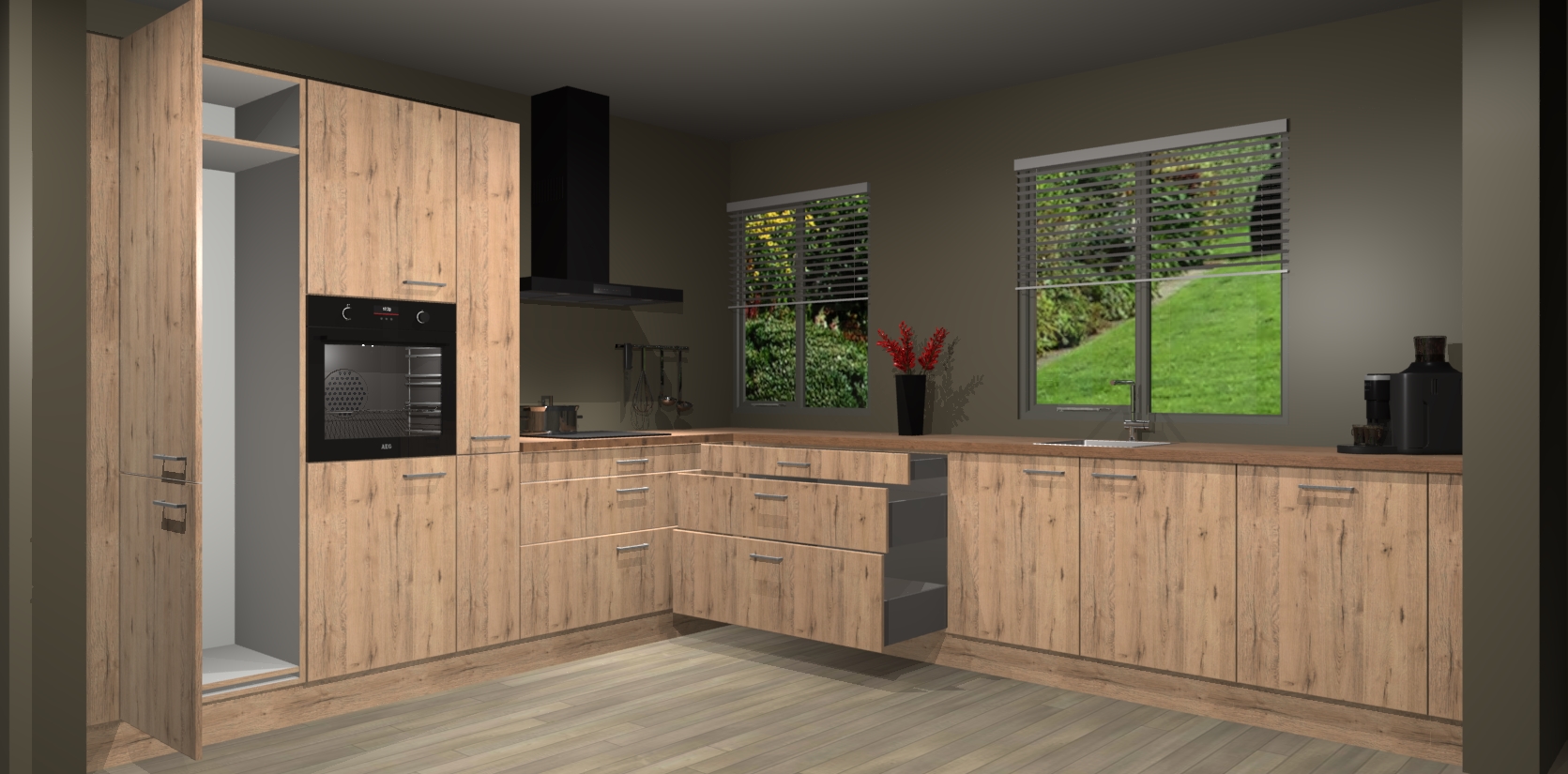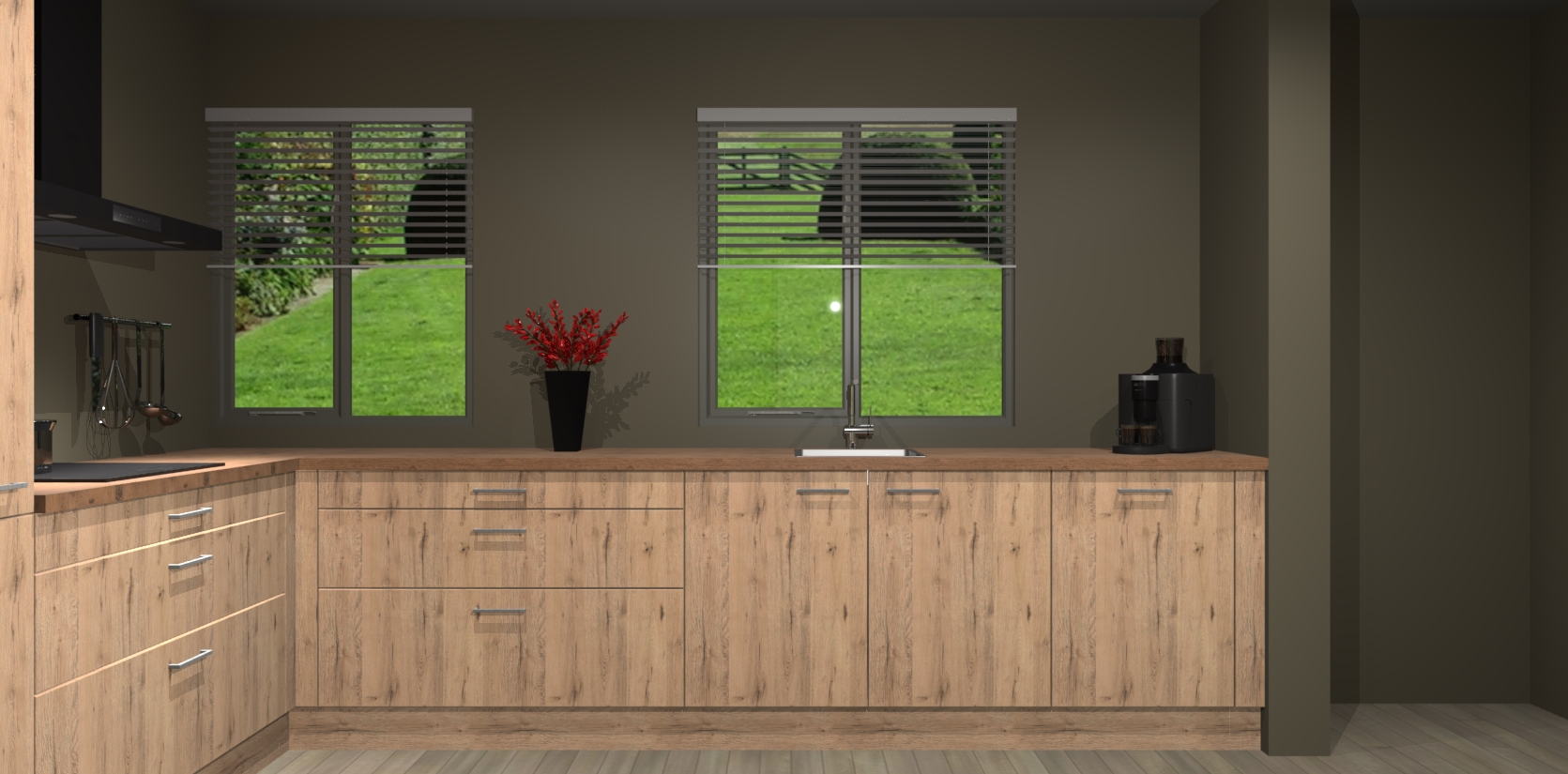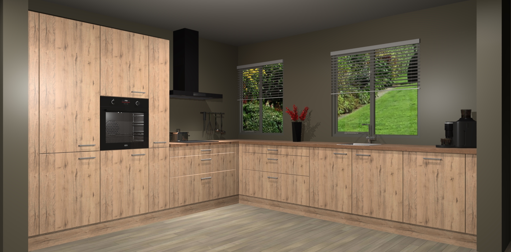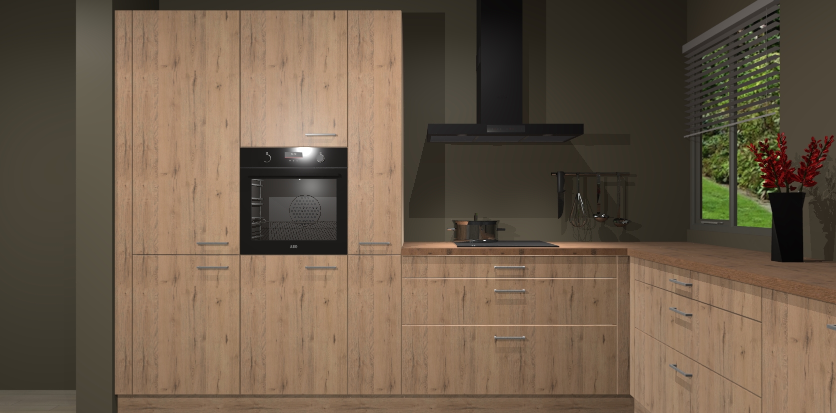 Welkom bij de Madera Natuur keuken Palermo. Deze prachtige keuken zal de komende jaren het middelpunt van de belangstelling in uw huis zijn. Uitgerust met vijf inbouwapparaten komt u nooit kookgereedschap tekort. Bovendien geeft de warme houtlook elke ruimte een uitnodigende en tijdloze uitstraling.