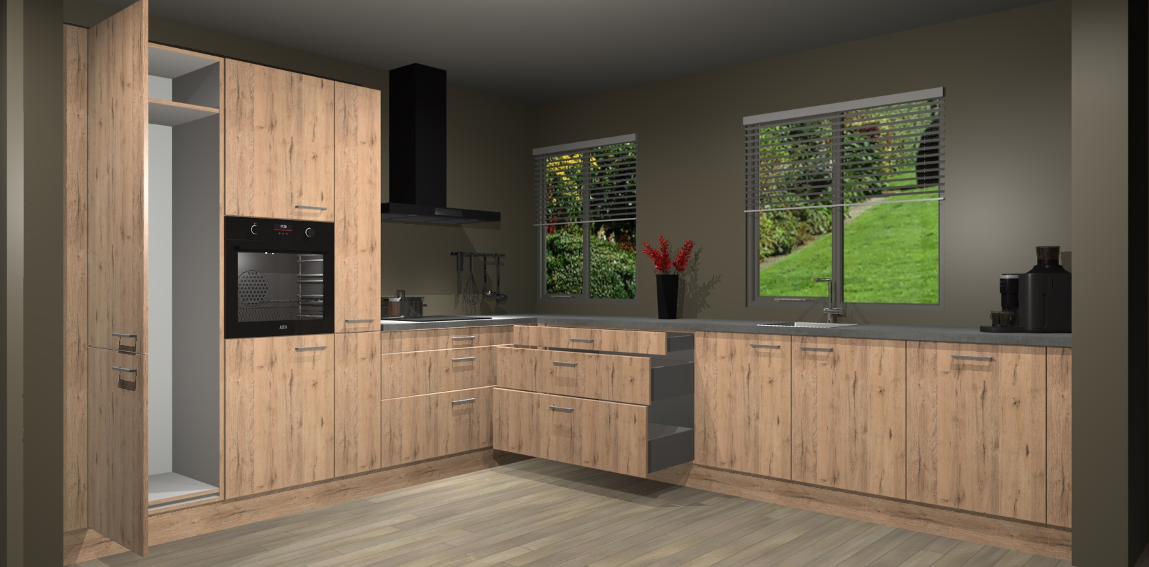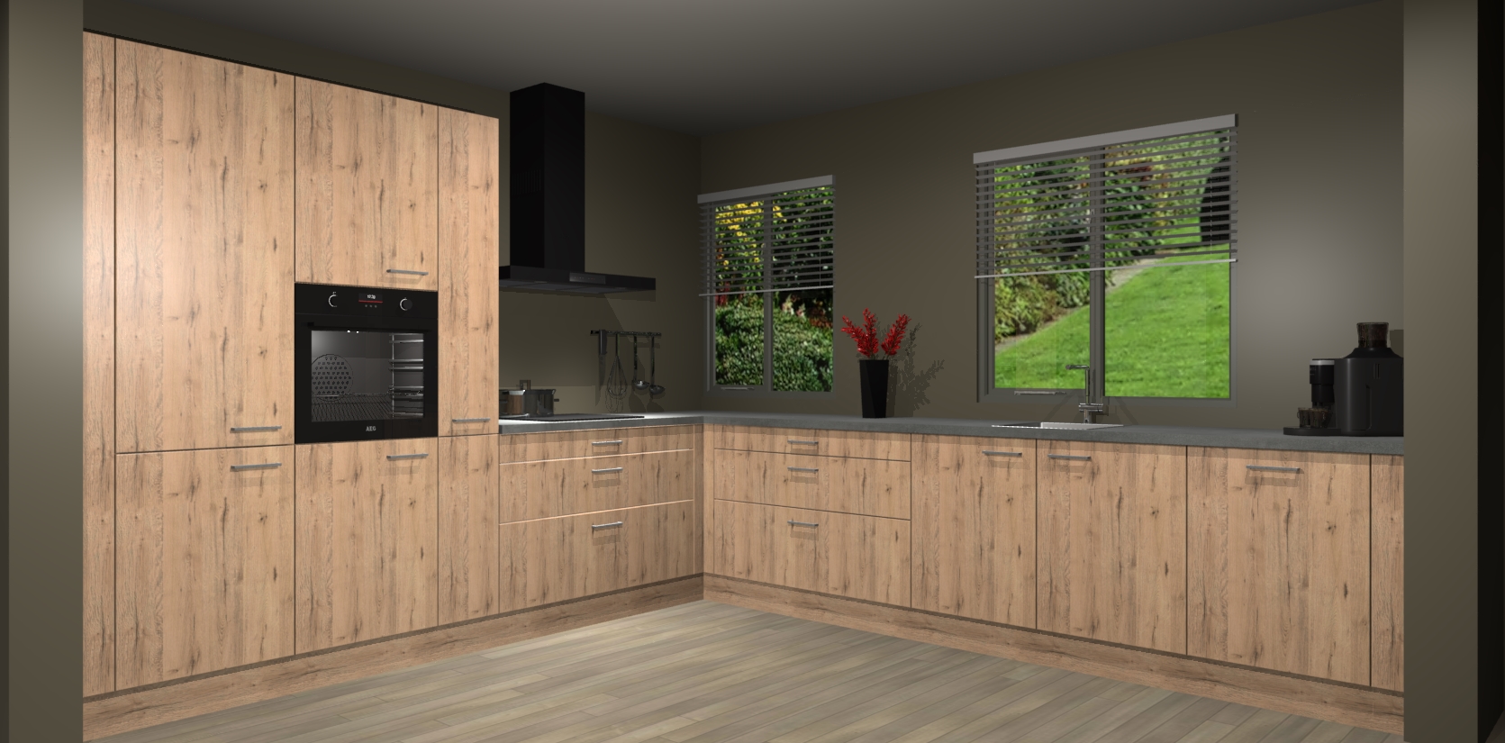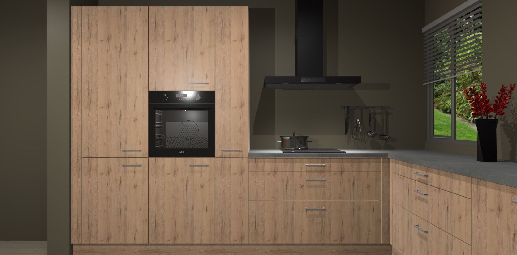 Welkom bij de Madera Natuur keuken Palermo. Deze prachtige keuken zal de komende jaren het middelpunt van de belangstelling in uw huis zijn. Uitgerust met vijf inbouwapparaten komt u nooit kookgereedschap tekort. Bovendien geeft de warme houtlook elke ruimte een uitnodigende en tijdloze uitstraling.