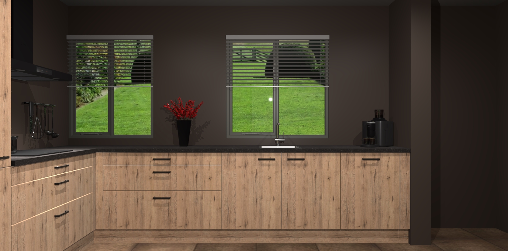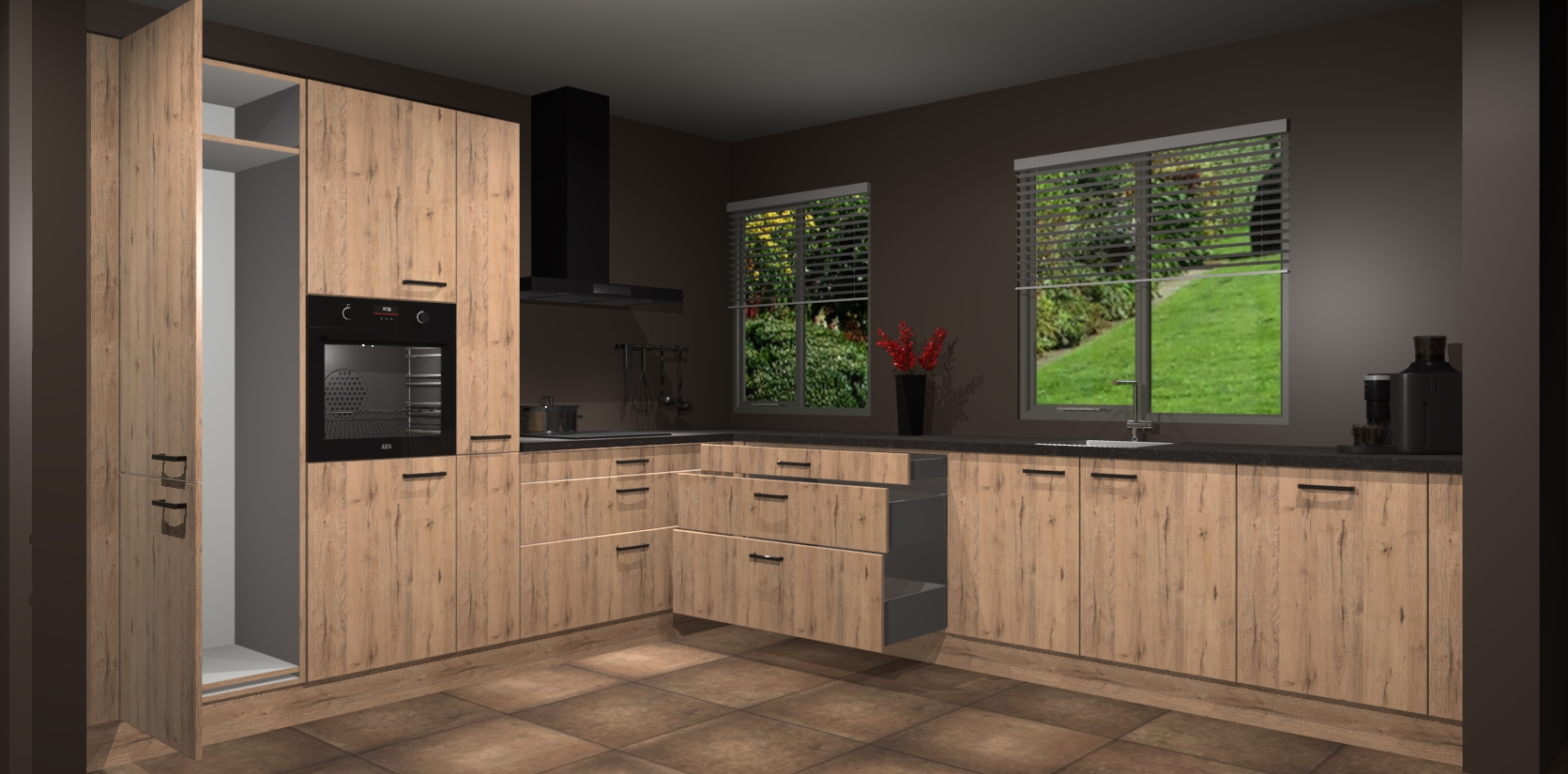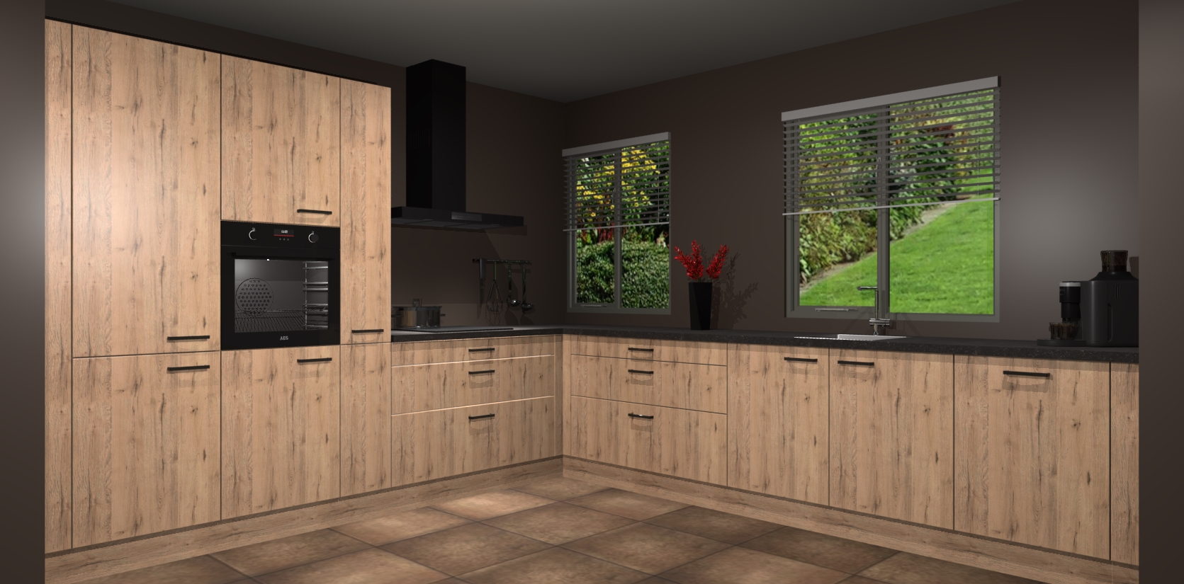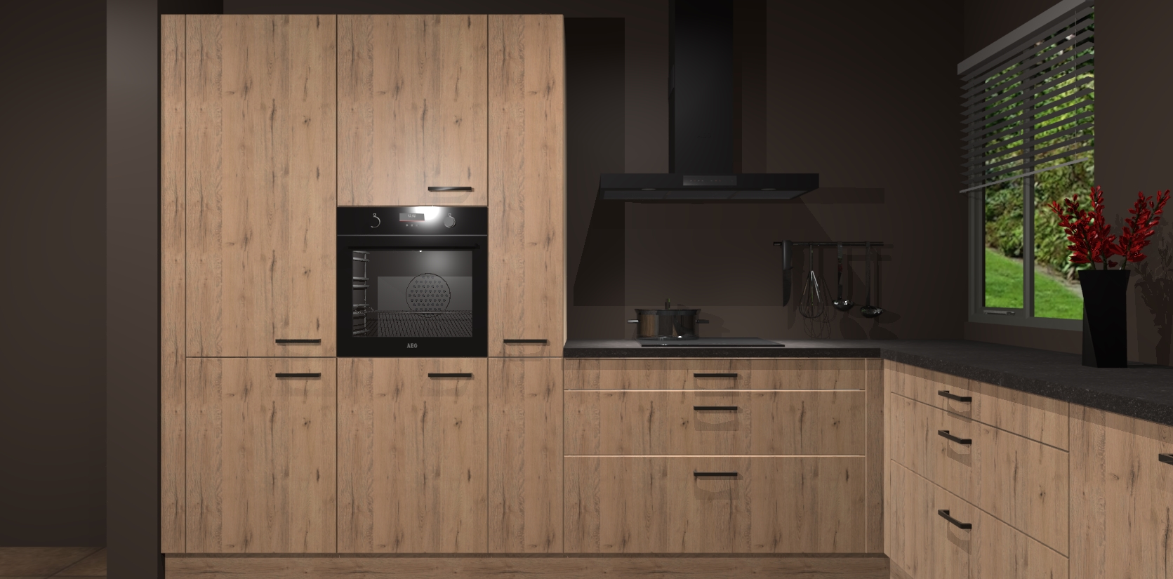 Welkom bij de Madera Natuur keuken Palermo. Deze prachtige keuken zal de komende jaren het middelpunt van de belangstelling in uw huis zijn. Uitgerust met vijf inbouwapparaten komt u nooit kookgereedschap tekort. Bovendien geeft de warme houtlook elke ruimte een uitnodigende en tijdloze uitstraling.