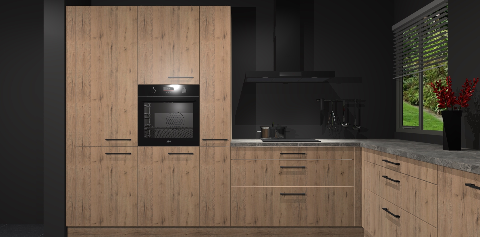 Welkom bij de Madera Natuur keuken Palermo. Deze prachtige keuken zal de komende jaren het middelpunt van de belangstelling in uw huis zijn. Uitgerust met vijf inbouwapparaten komt u nooit kookgereedschap tekort. Bovendien geeft de warme houtlook elke ruimte een uitnodigende en tijdloze uitstraling.