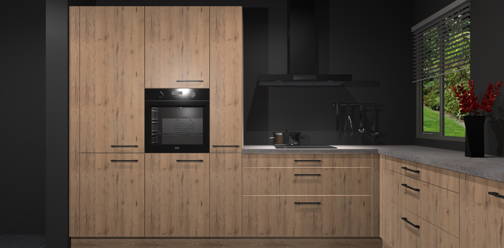Welkom bij de Madera Natuur keuken Palermo. Deze prachtige keuken zal de komende jaren het middelpunt van de belangstelling in uw huis zijn. Uitgerust met vijf inbouwapparaten komt u nooit kookgereedschap tekort. Bovendien geeft de warme houtlook elke ruimte een uitnodigende en tijdloze uitstraling.