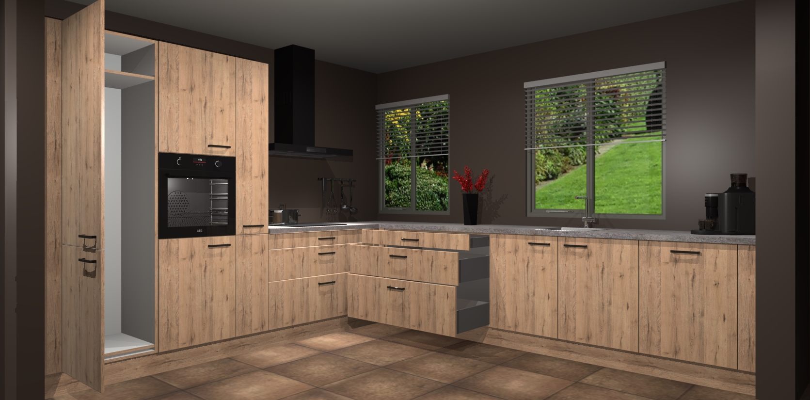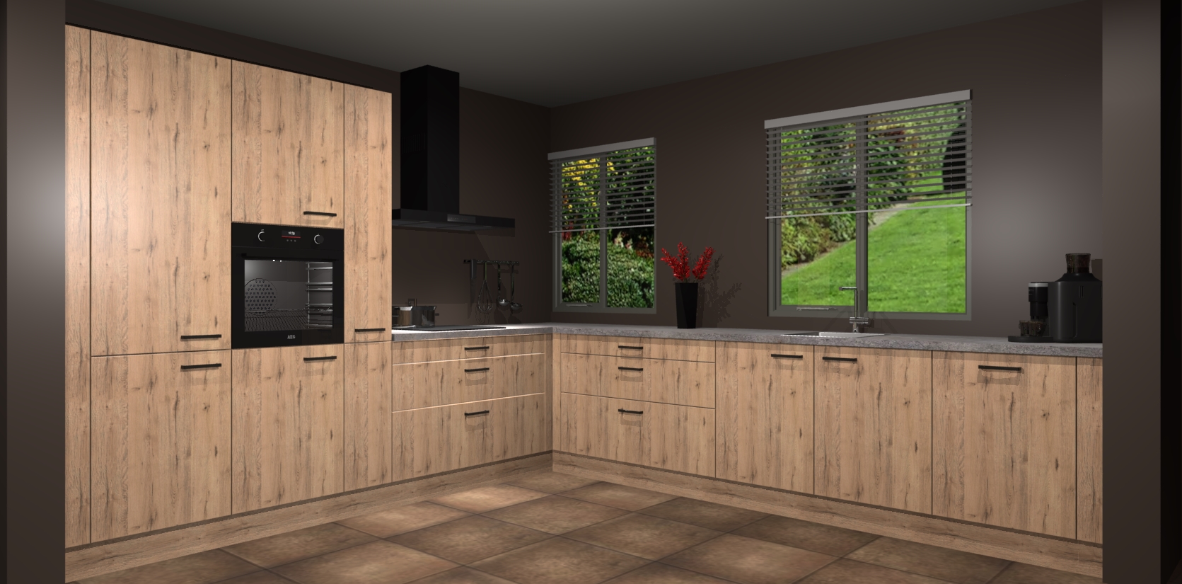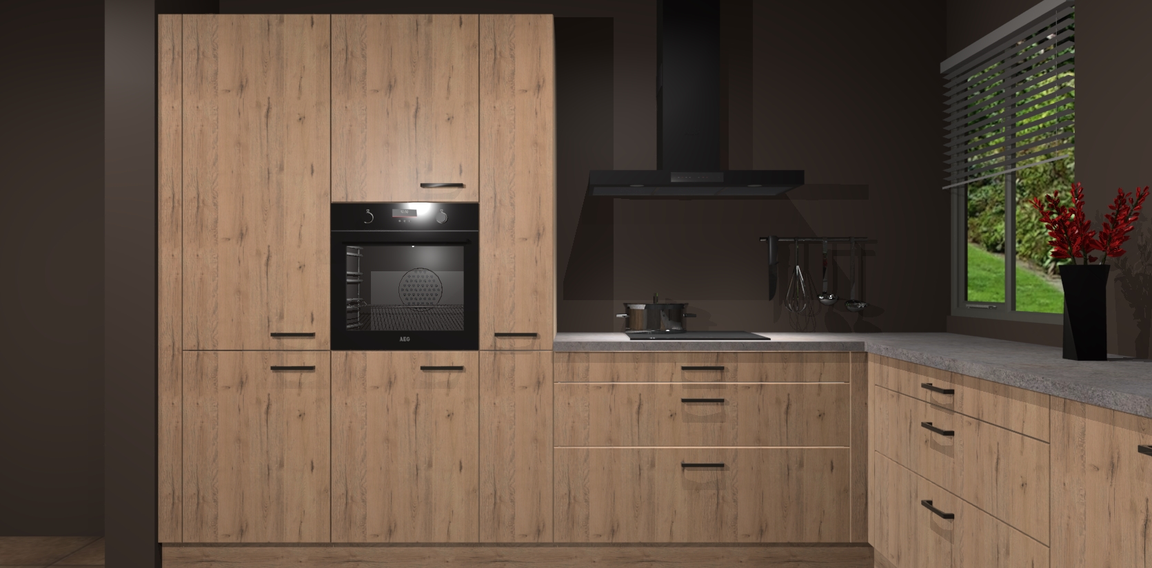 Welkom bij de Madera Natuur keuken Palermo. Deze prachtige keuken zal de komende jaren het middelpunt van de belangstelling in uw huis zijn. Uitgerust met vijf inbouwapparaten komt u nooit kookgereedschap tekort. Bovendien geeft de warme houtlook elke ruimte een uitnodigende en tijdloze uitstraling.