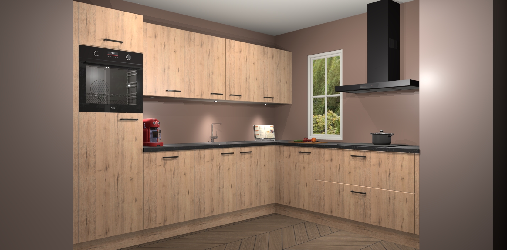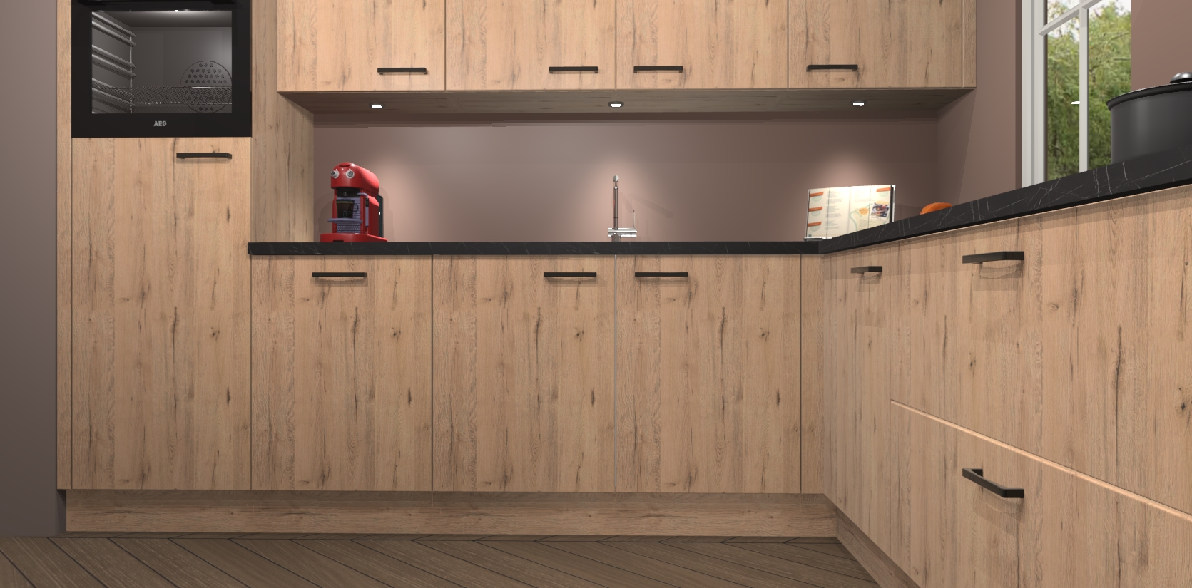 Er is voldoende opbergruimte voor al het gereedschap, de ingrediënten of prullaria die u nodig heeft tijdens het bereiden van uw nieuwste meesterwerk. Bovendien sluiten alle deuren zachtjes, zodat u zich geen zorgen hoeft te maken over luid gebonk. En dat is nog niet alles! De madera natuur keuken Paramaribo wordt geleverd met vijf inbouwapparaten - oven, inductiekookplaat, afzuigkap, vaatwasser en koelkast. U kunt er zelfs voor kiezen om na bestelling te upgraden naar AEG als u dat in nieuwe keuken wilt.