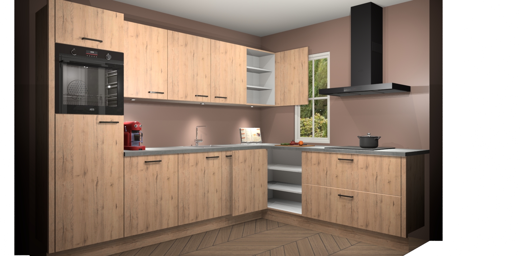 Inclusief plinten, stelpoten en werkblad