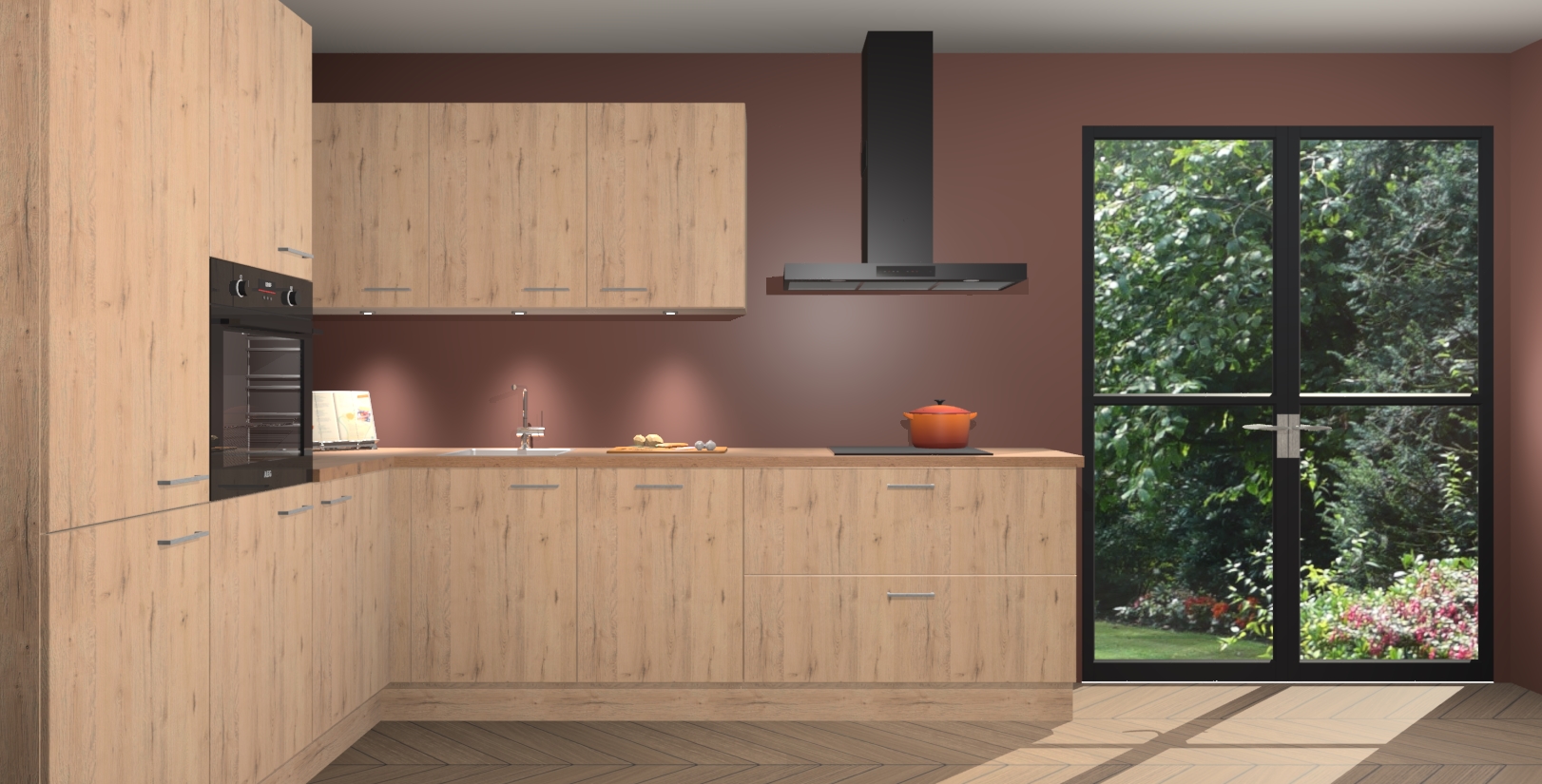 Maak kennis met de madera natuur keuken Parla - de perfecte aanvulling voor uw moderne keuken! Ervaar tijdloos design, elegantie en een chique uitstraling met onze zwarte handgrepen, soft-close deuren en veel opbergruimte. Dit alles wordt aangeboden tegen een vaste lage prijs voor ongeëvenaarde Duitse keukenkwaliteit!