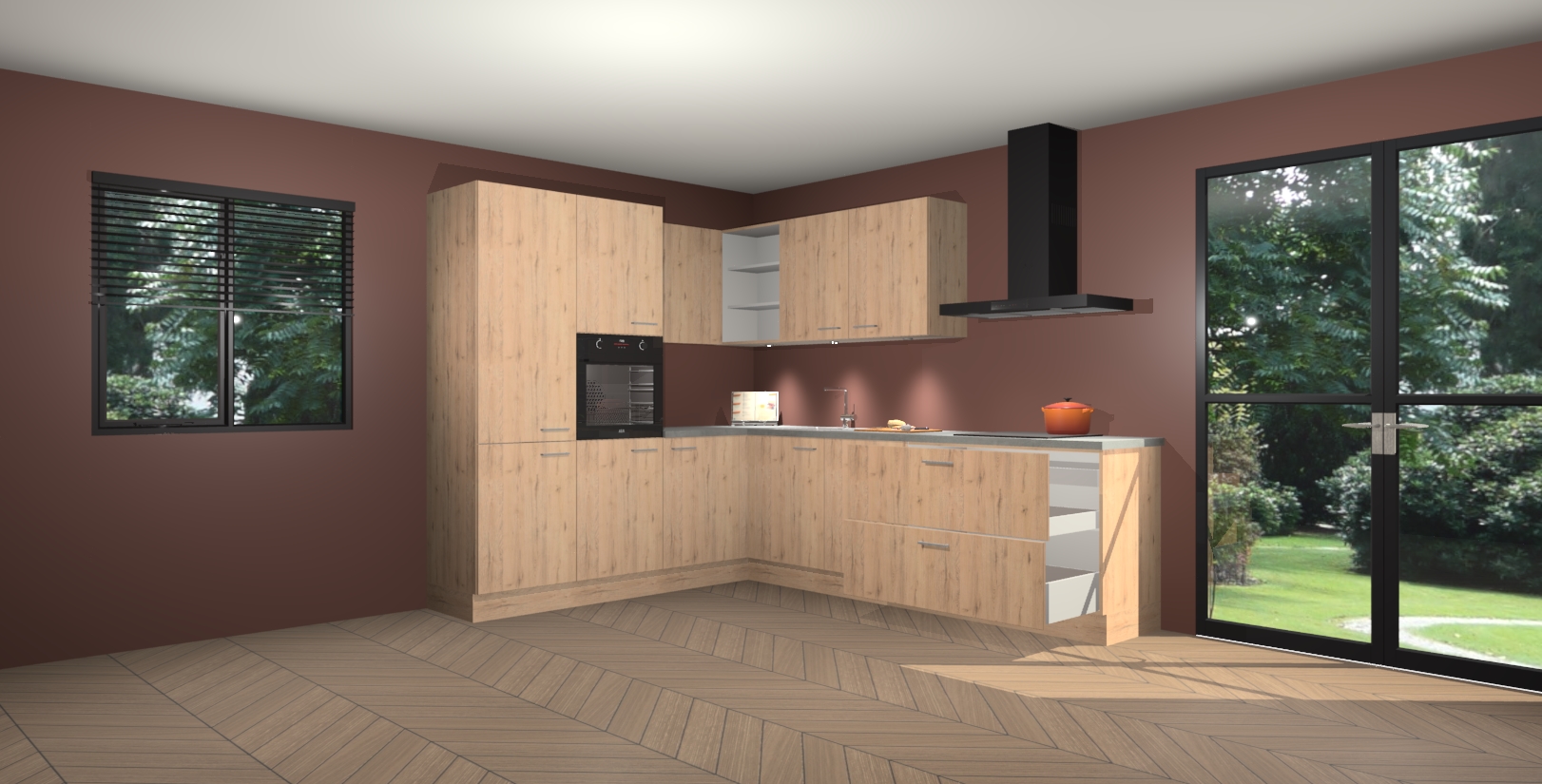 Maak kennis met de madera natuur keuken Parla - de perfecte aanvulling voor uw moderne keuken! Ervaar tijdloos design, elegantie en een chique uitstraling met onze zwarte handgrepen, soft-close deuren en veel opbergruimte. Dit alles wordt aangeboden tegen een vaste lage prijs voor ongeëvenaarde Duitse keukenkwaliteit!