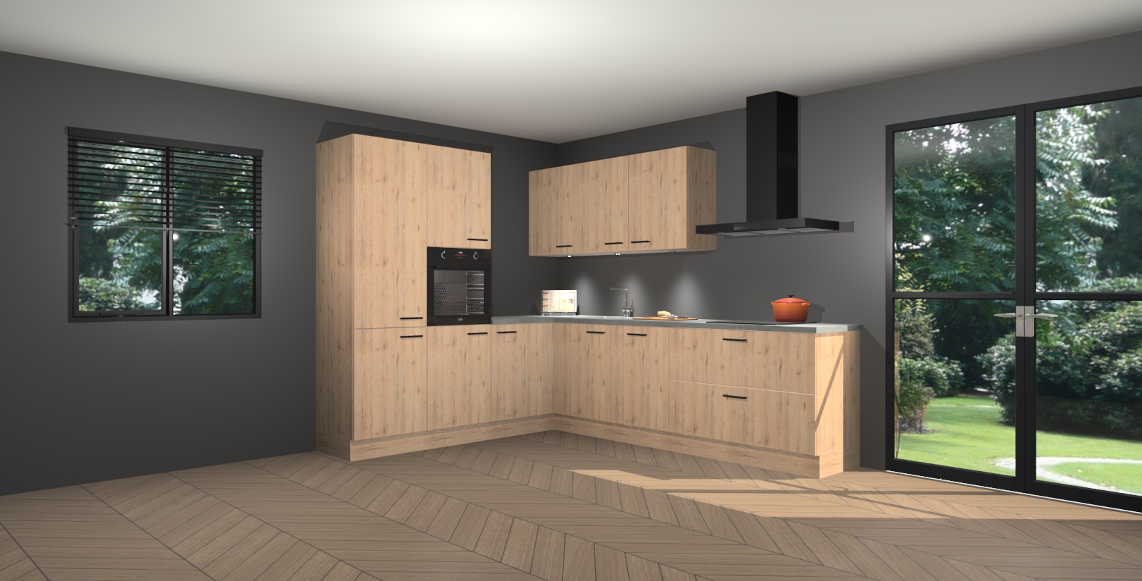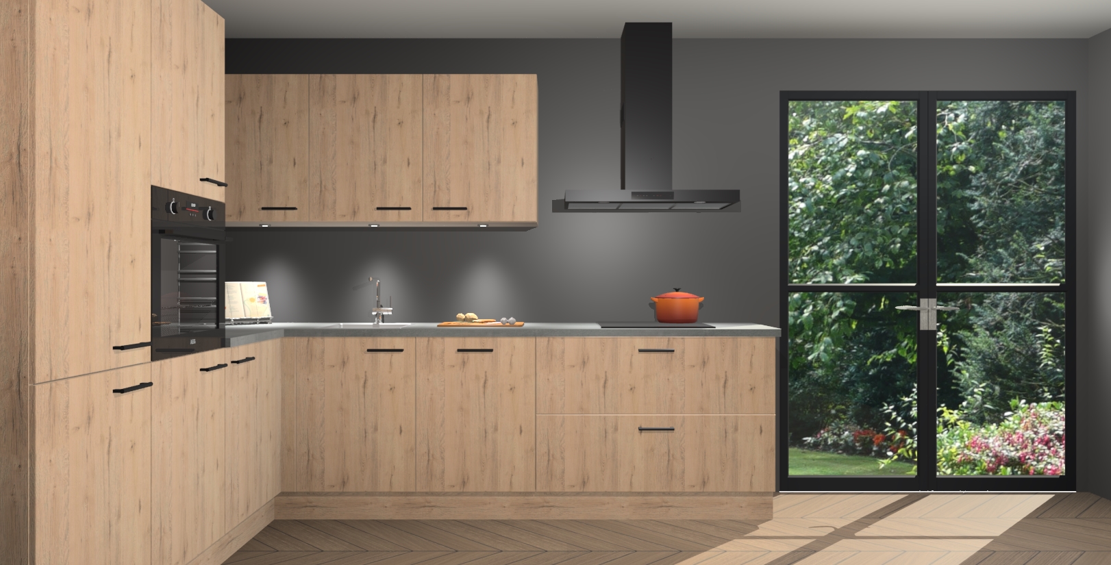 Maak kennis met de madera natuur keuken Parla - de perfecte aanvulling voor uw moderne keuken! Ervaar tijdloos design, elegantie en een chique uitstraling met onze zwarte handgrepen, soft-close deuren en veel opbergruimte. Dit alles wordt aangeboden tegen een vaste lage prijs voor ongeëvenaarde Duitse keukenkwaliteit!