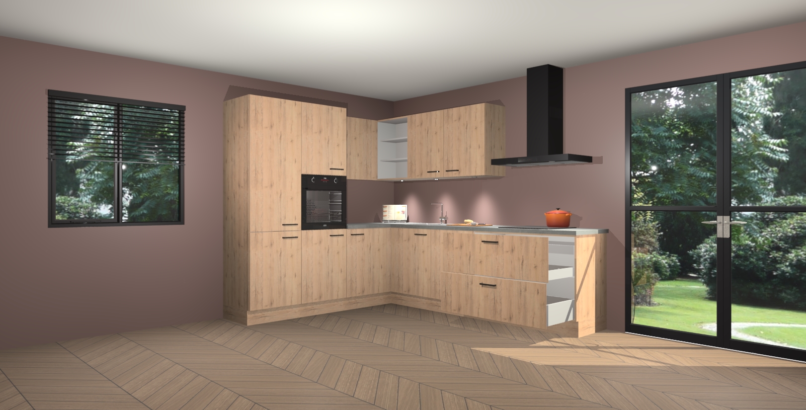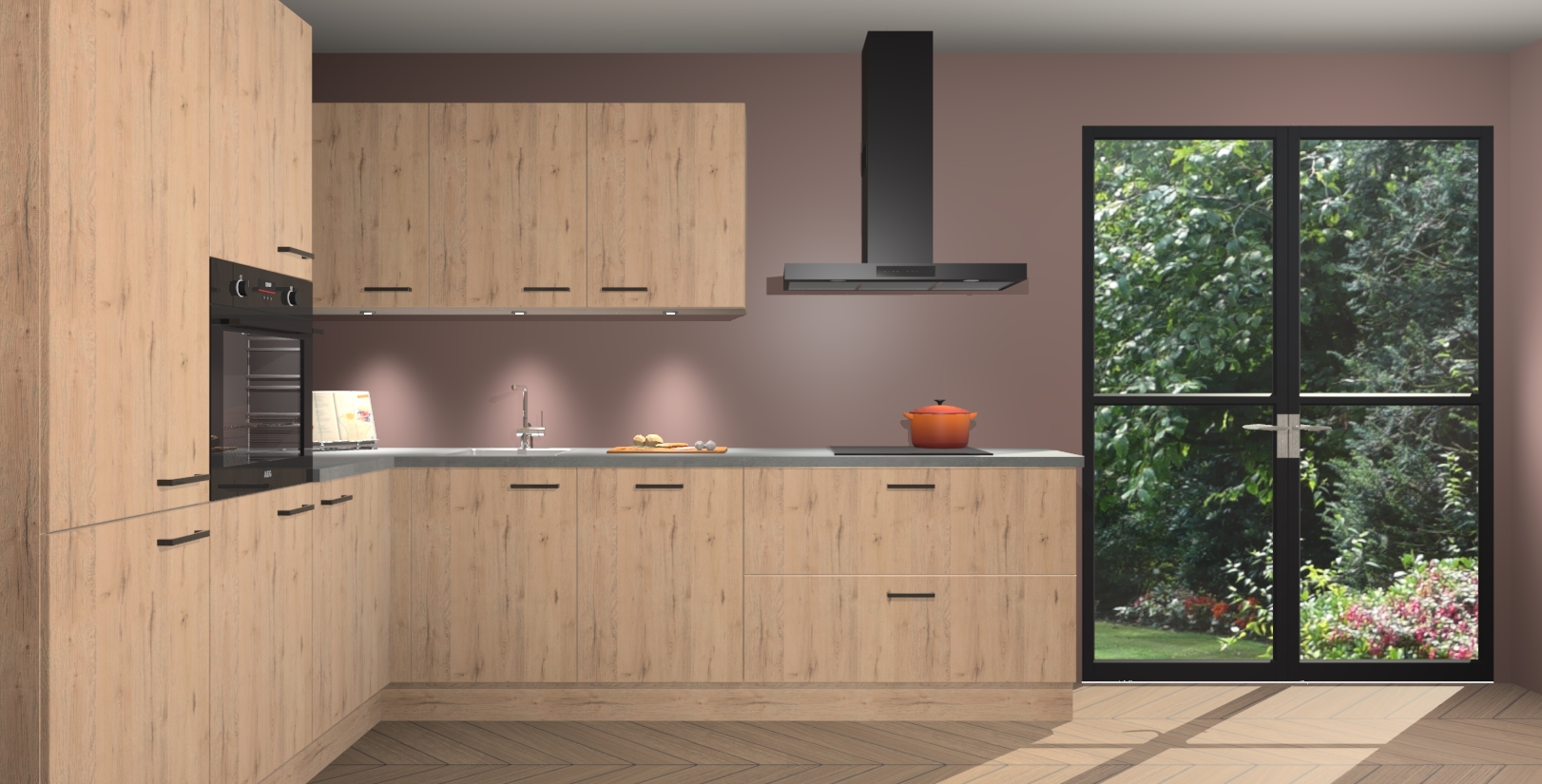Maak kennis met de madera natuur keuken Parla - de perfecte aanvulling voor uw moderne keuken! Ervaar tijdloos design, elegantie en een chique uitstraling met onze zwarte handgrepen, soft-close deuren en veel opbergruimte. Dit alles wordt aangeboden tegen een vaste lage prijs voor ongeëvenaarde Duitse keukenkwaliteit!