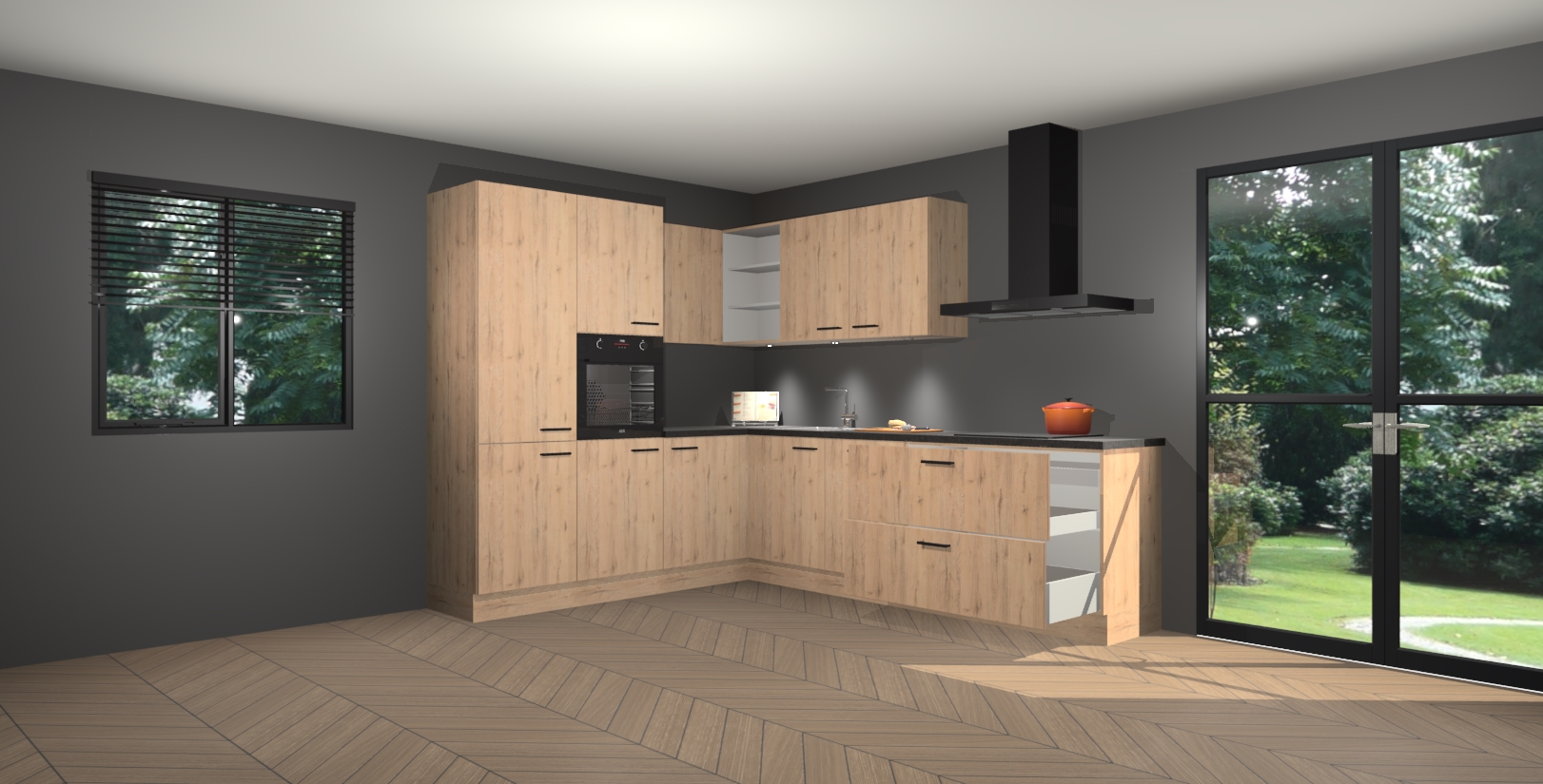 Maak kennis met de madera natuur keuken Parla - de perfecte aanvulling voor uw moderne keuken! Ervaar tijdloos design, elegantie en een chique uitstraling met onze zwarte handgrepen, soft-close deuren en veel opbergruimte. Dit alles wordt aangeboden tegen een vaste lage prijs voor ongeëvenaarde Duitse keukenkwaliteit!