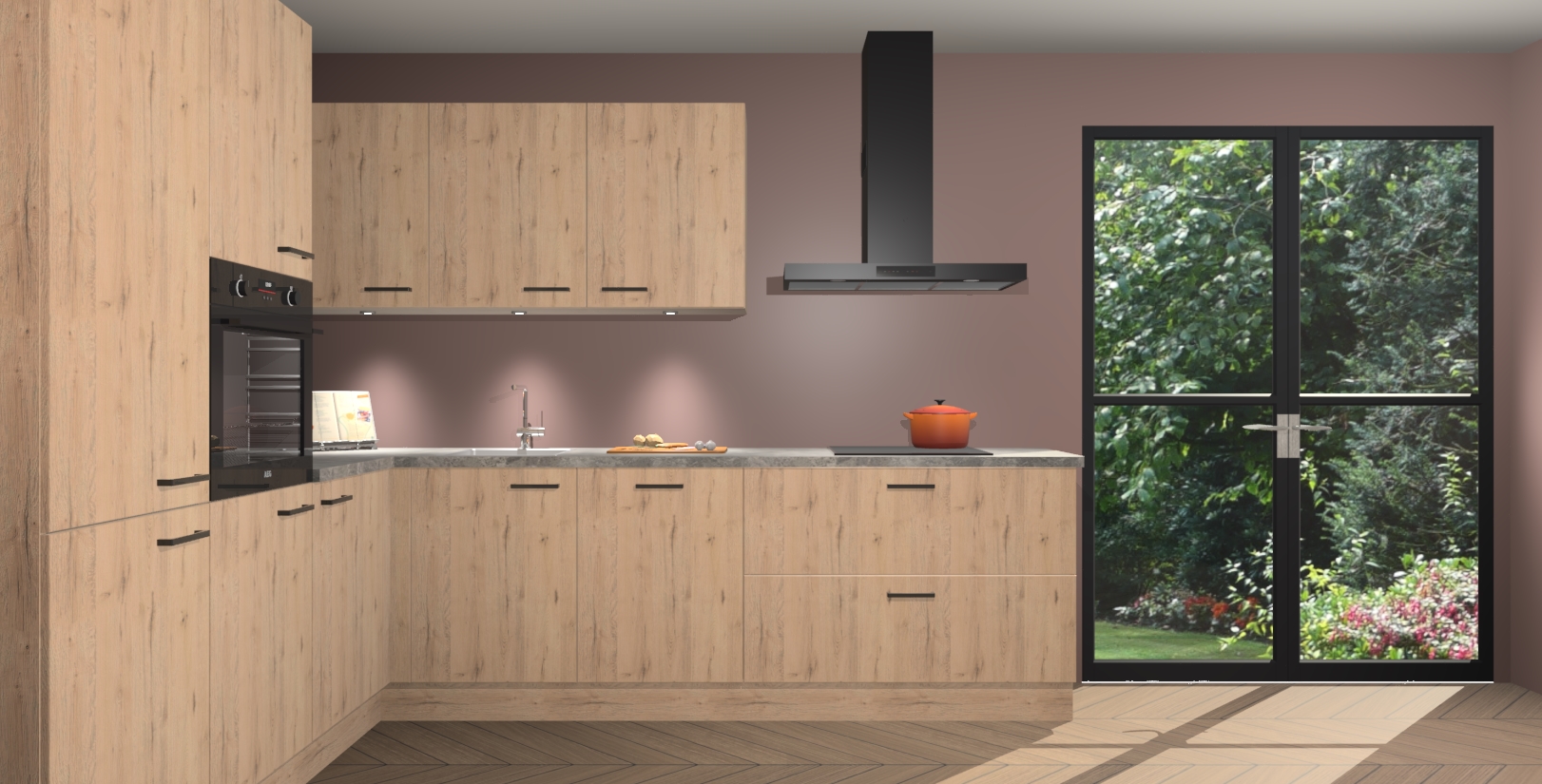 Maak kennis met de madera natuur keuken Parla - de perfecte aanvulling voor uw moderne keuken! Ervaar tijdloos design, elegantie en een chique uitstraling met onze zwarte handgrepen, soft-close deuren en veel opbergruimte. Dit alles wordt aangeboden tegen een vaste lage prijs voor ongeëvenaarde Duitse keukenkwaliteit!