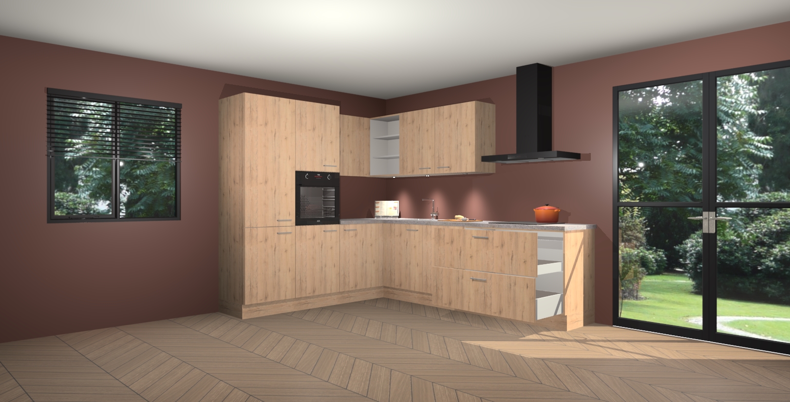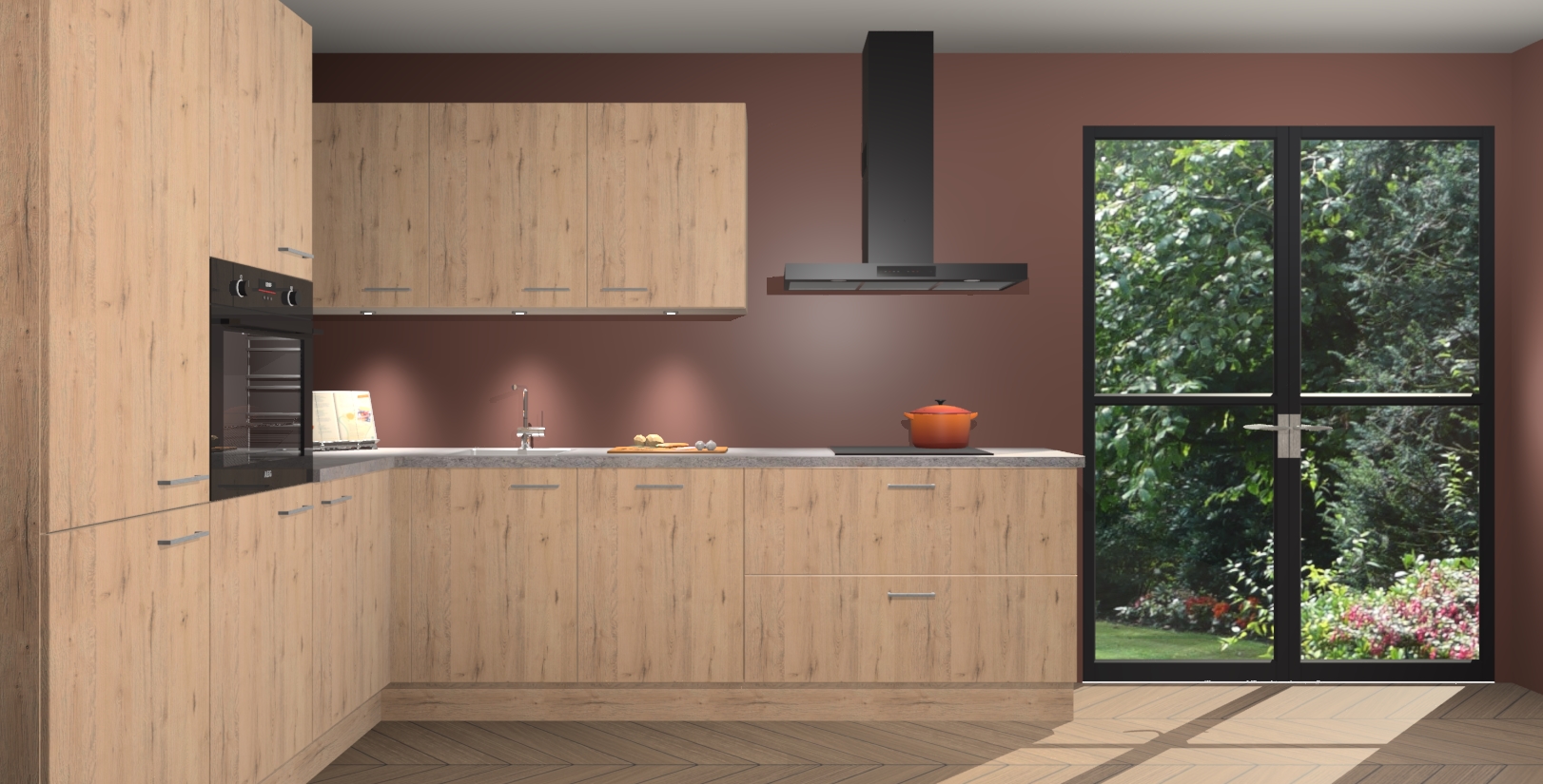 Maak kennis met de madera natuur keuken Parla - de perfecte aanvulling voor uw moderne keuken! Ervaar tijdloos design, elegantie en een chique uitstraling met onze zwarte handgrepen, soft-close deuren en veel opbergruimte. Dit alles wordt aangeboden tegen een vaste lage prijs voor ongeëvenaarde Duitse keukenkwaliteit!