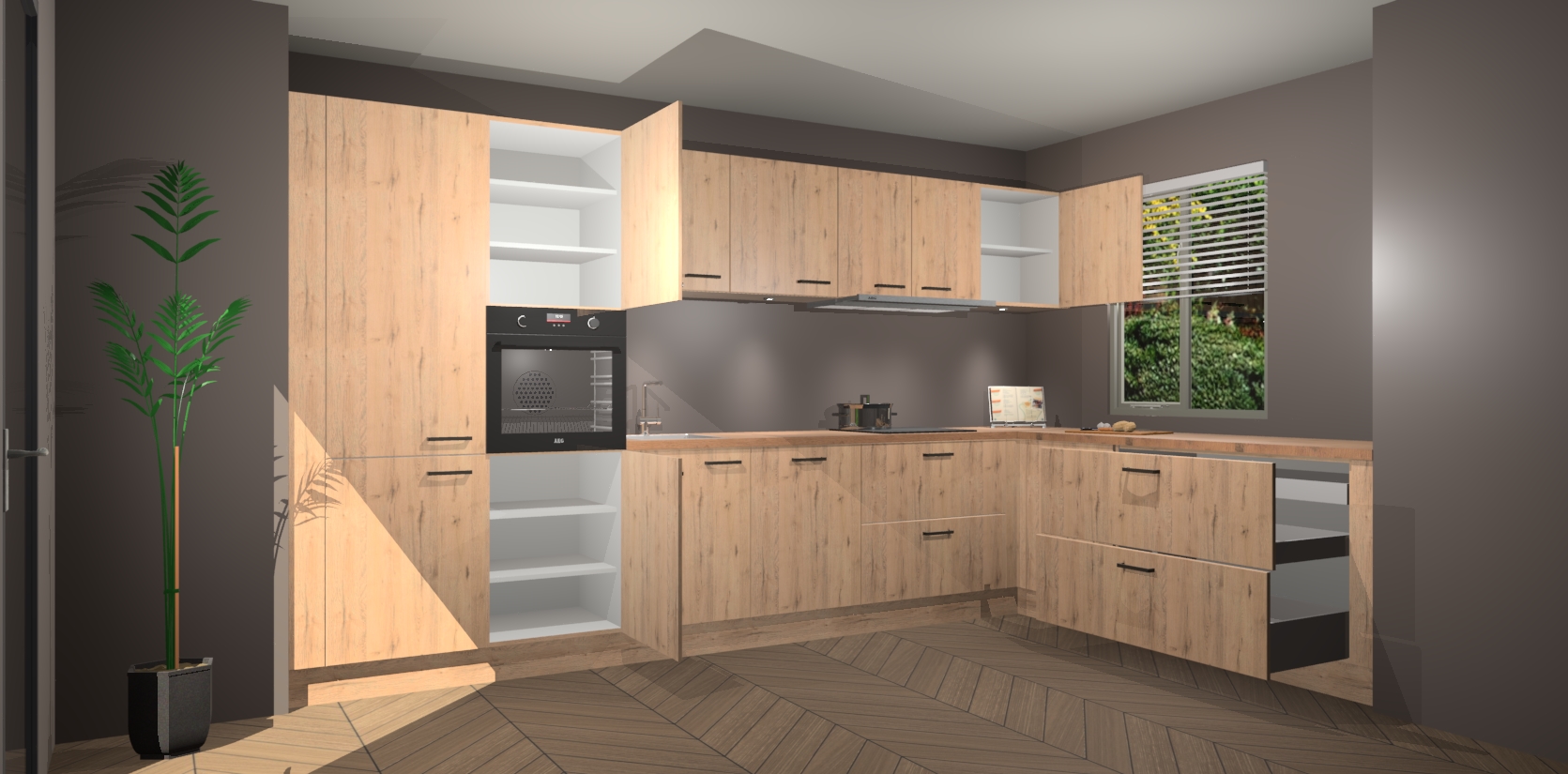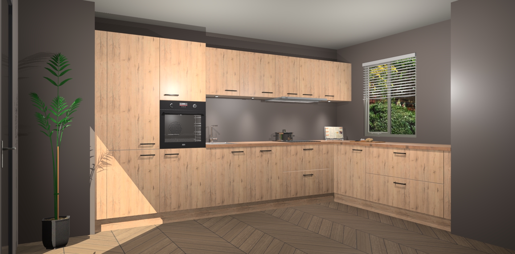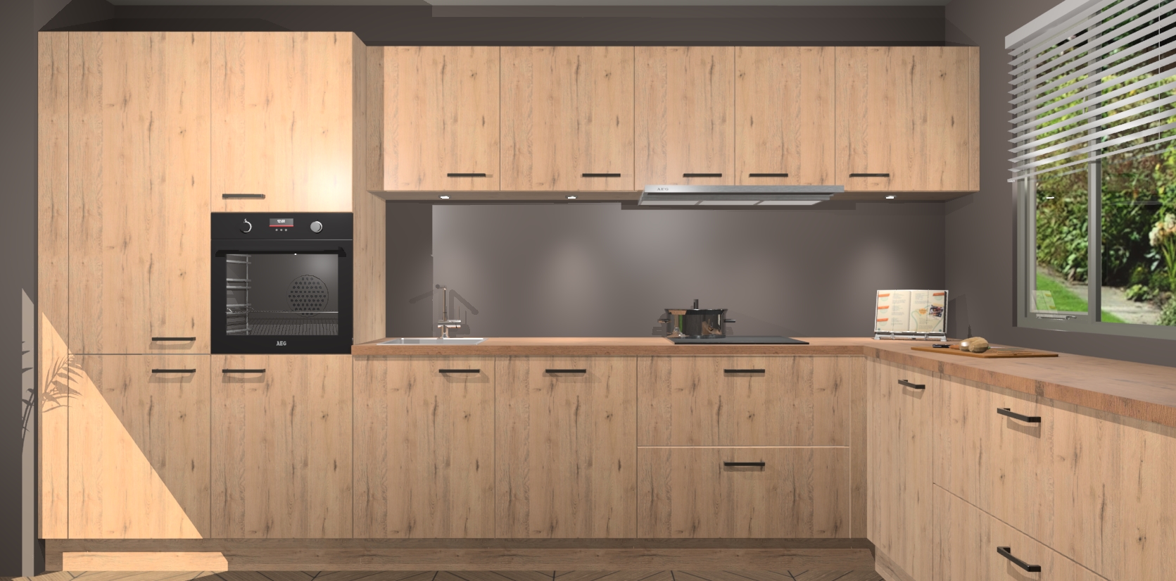 Verwelkom de natuurlijke warmte van de Madera Natuur keuken Petten in uw huis. Deze prachtige hoekkeuken met zijn moderne design en warme houten look geeft u meer dan genoeg opbergruimte om uw comfortabel te voelen in uw keuken. Geniet van soft-close deuren die al uw gasten het gevoel zullen geven dat ze zich in een luxueuze ruimte bevinden.