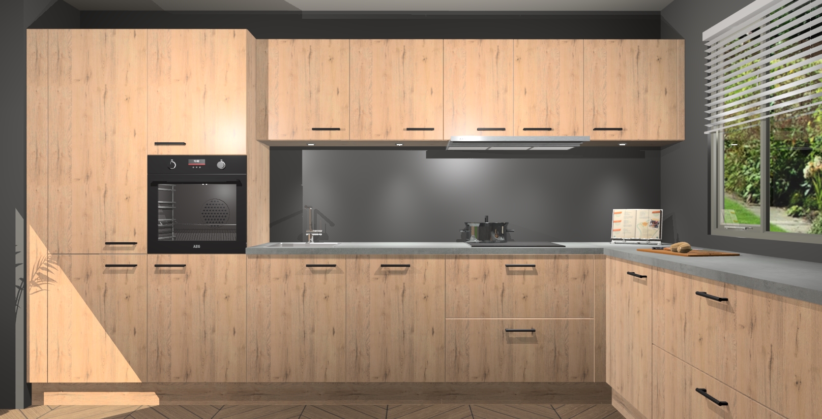 Verwelkom de natuurlijke warmte van de Madera Natuur keuken Petten in uw huis. Deze prachtige hoekkeuken met zijn moderne design en warme houten look geeft u meer dan genoeg opbergruimte om uw comfortabel te voelen in uw keuken. Geniet van soft-close deuren die al uw gasten het gevoel zullen geven dat ze zich in een luxueuze ruimte bevinden.