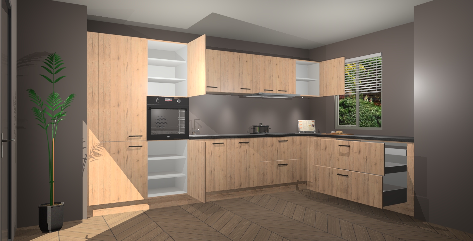 Verwelkom de natuurlijke warmte van de Madera Natuur keuken Petten in uw huis. Deze prachtige hoekkeuken met zijn moderne design en warme houten look geeft u meer dan genoeg opbergruimte om uw comfortabel te voelen in uw keuken. Geniet van soft-close deuren die al uw gasten het gevoel zullen geven dat ze zich in een luxueuze ruimte bevinden.