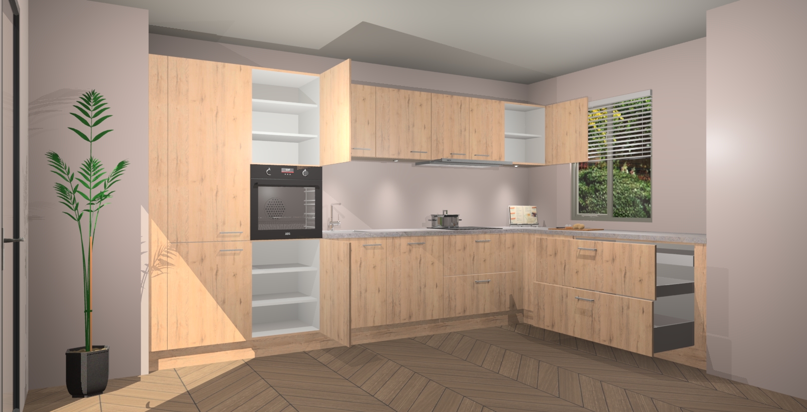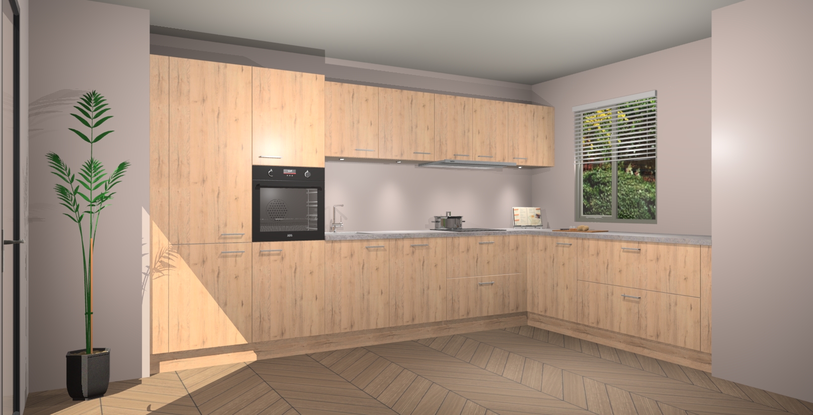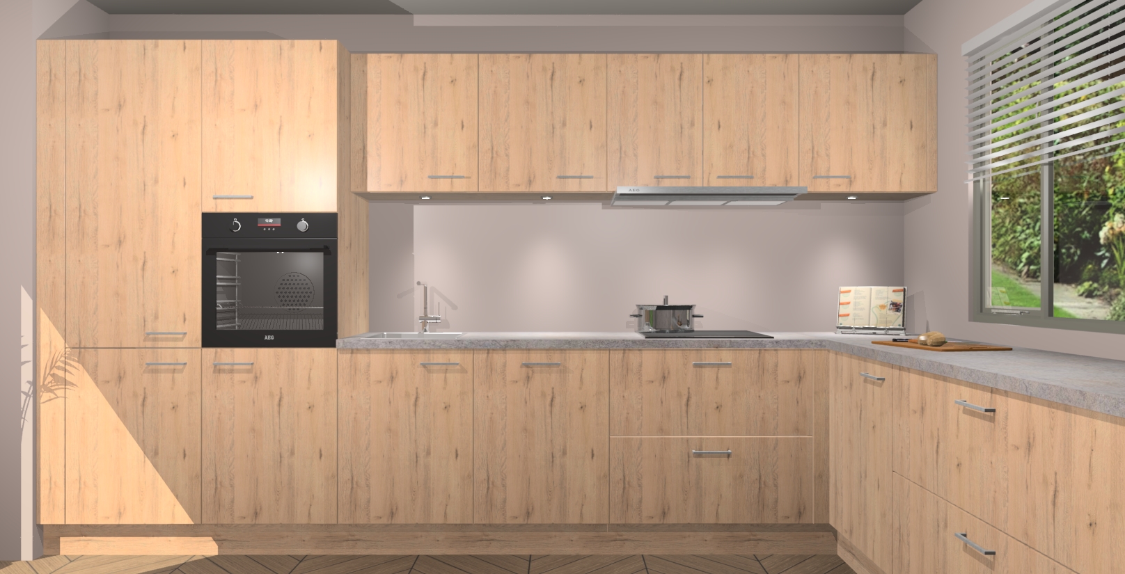 Verwelkom de natuurlijke warmte van de Madera Natuur keuken Petten in uw huis. Deze prachtige hoekkeuken met zijn moderne design en warme houten look geeft u meer dan genoeg opbergruimte om uw comfortabel te voelen in uw keuken. Geniet van soft-close deuren die al uw gasten het gevoel zullen geven dat ze zich in een luxueuze ruimte bevinden.