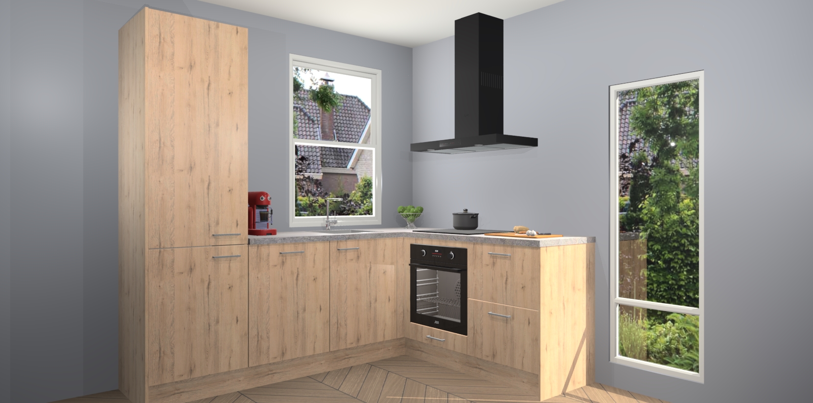 De prachtige Madera Natuur keuken Phuket is de perfecte keuze als u op zoek bent naar een moderne hoekkeuken met alle luxe en comfort die u kunt verwachten! De uitstraling in het houtlook-design draagt bij aan de warme sfeer die u nu al voelt wanneer u er naar kijkt. Heeft u genoeg van ouderwetse keukens? Probeer dan direct deze moderne, mooie hoekkeukens en laat iedereen verbluft achter!