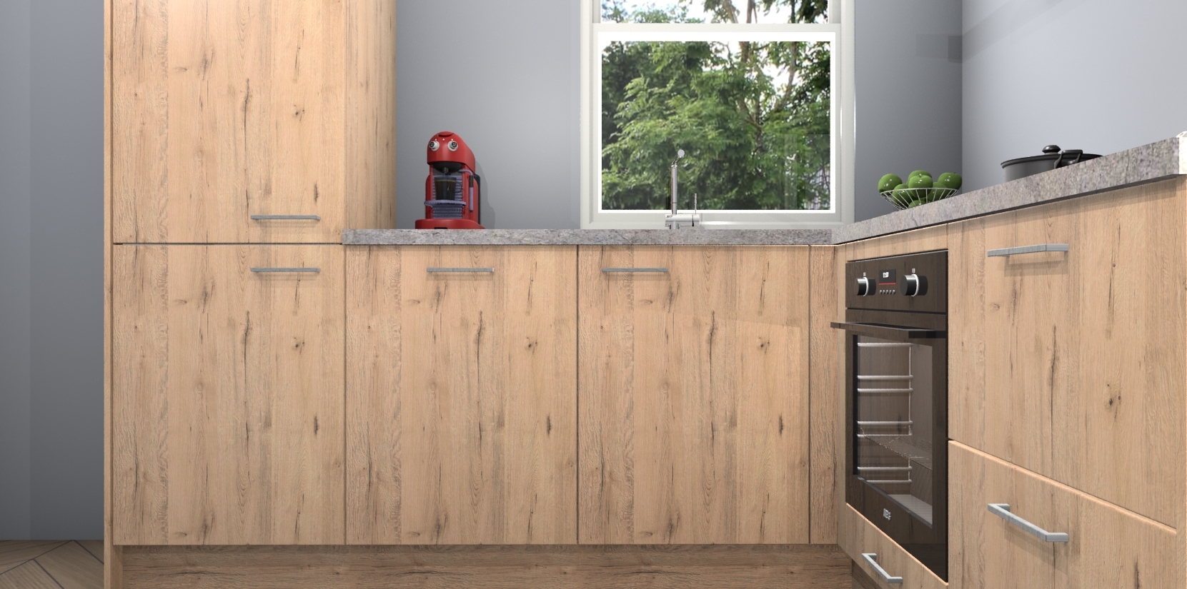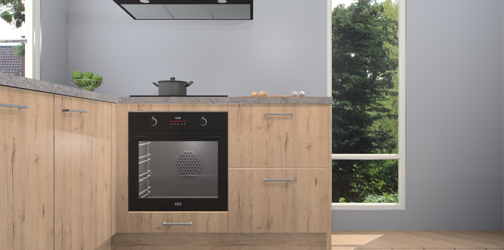 De Madera Natuur keuken Phuket heeft alles wat u maar kunt wensen. Niet alleen zijn er softclose deuren, maar ook 5 ingebouwde apparaten: een oven, inductiekookplaat, afzuigkap, vaatwasser en koelkast - waarbij u later gemakkelijk naar het AEG merk, van inductiekookplaat naar kookplaat met geïntegreerde afzuiging of van oven naar combimagnetron kunt upgraden. Dat alles tegen een vast laag tarief! Bovendien geeft de Madera Natuur keuken Phuket supersnelle levering van 7 weken. Echt iets voor u als u er niet op wilt wachten om het resultaat te zien in eigen keuken!
