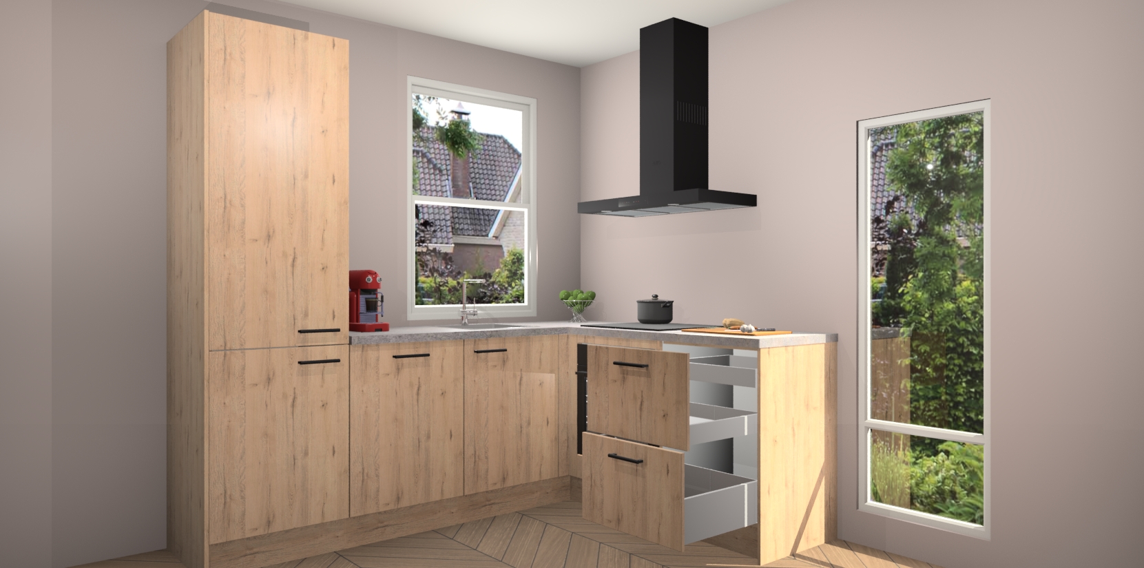 De prachtige Madera Natuur keuken Phuket is de perfecte keuze als u op zoek bent naar een moderne hoekkeuken met alle luxe en comfort die u kunt verwachten! De uitstraling in het houtlook-design draagt bij aan de warme sfeer die u nu al voelt wanneer u er naar kijkt. Heeft u genoeg van ouderwetse keukens? Probeer dan direct deze moderne, mooie hoekkeukens en laat iedereen verbluft achter!