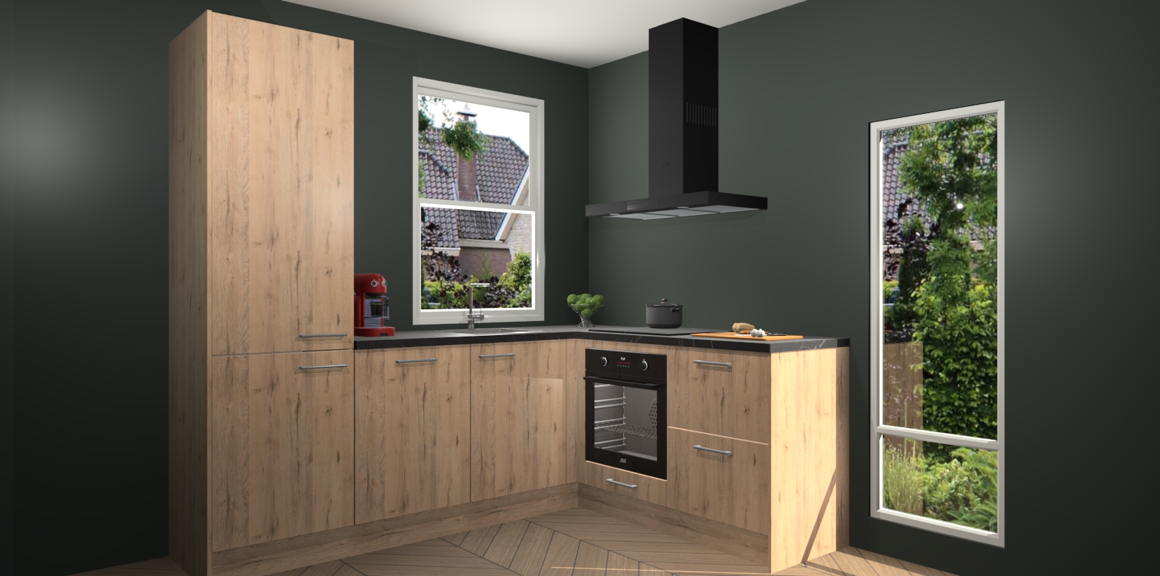 De prachtige Madera Natuur keuken Phuket is de perfecte keuze als u op zoek bent naar een moderne hoekkeuken met alle luxe en comfort die u kunt verwachten! De uitstraling in het houtlook-design draagt bij aan de warme sfeer die u nu al voelt wanneer u er naar kijkt. Heeft u genoeg van ouderwetse keukens? Probeer dan direct deze moderne, mooie hoekkeukens en laat iedereen verbluft achter!