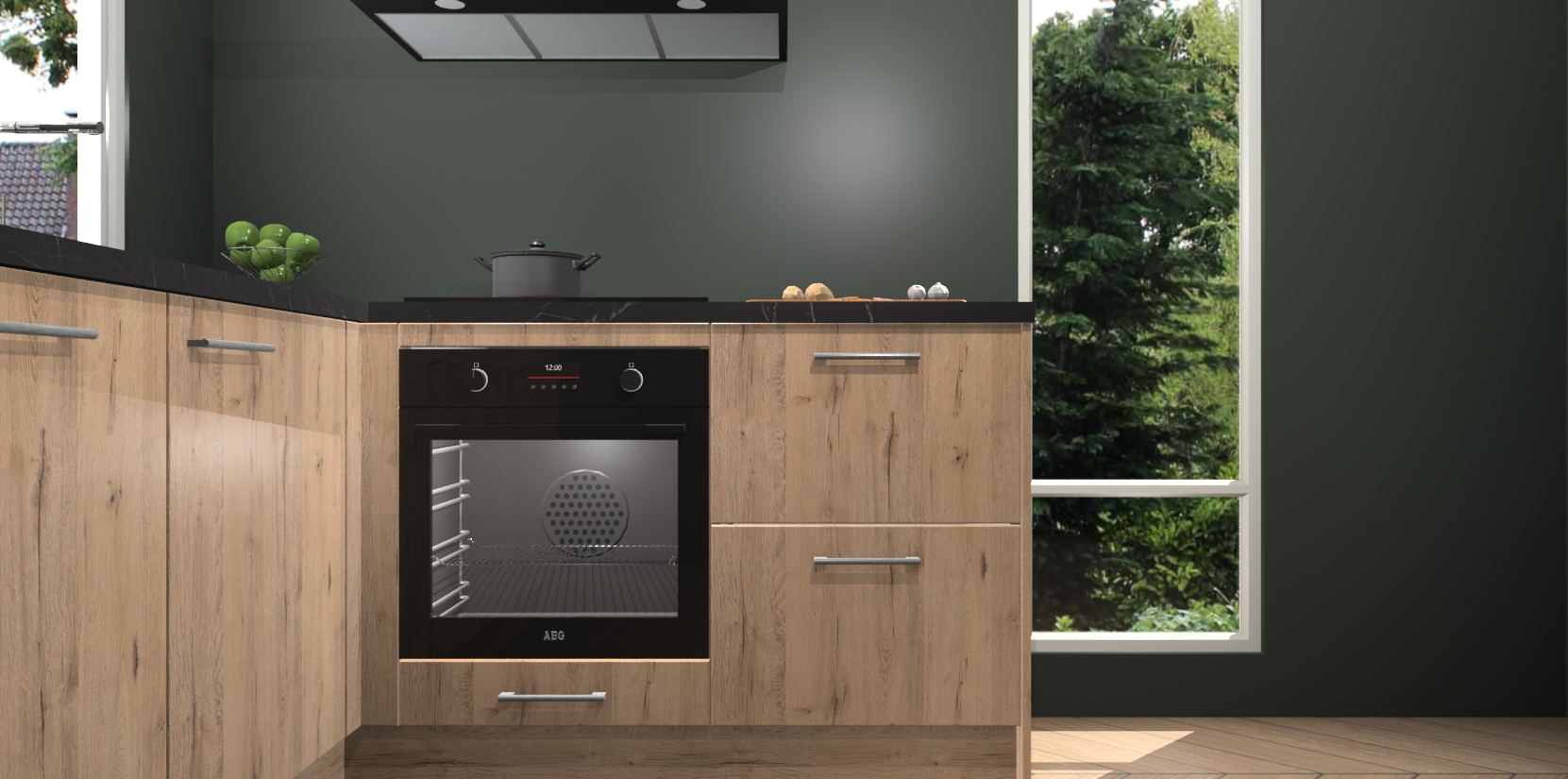 De Madera Natuur keuken Phuket heeft alles wat u maar kunt wensen. Niet alleen zijn er softclose deuren, maar ook 5 ingebouwde apparaten: een oven, inductiekookplaat, afzuigkap, vaatwasser en koelkast - waarbij u later gemakkelijk naar het AEG merk, van inductiekookplaat naar kookplaat met geïntegreerde afzuiging of van oven naar combimagnetron kunt upgraden. Dat alles tegen een vast laag tarief! Bovendien geeft de Madera Natuur keuken Phuket supersnelle levering van 7 weken. Echt iets voor u als u er niet op wilt wachten om het resultaat te zien in eigen keuken!