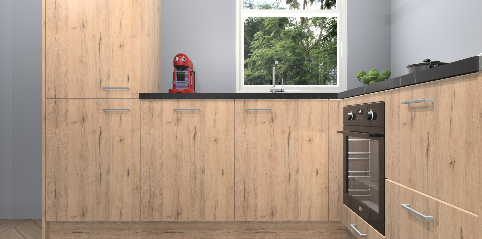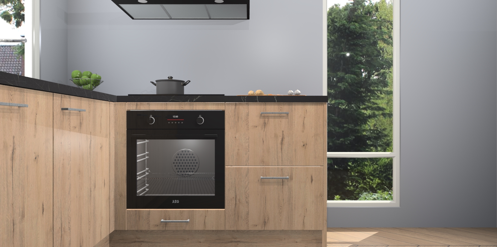 De Madera Natuur keuken Phuket heeft alles wat u maar kunt wensen. Niet alleen zijn er softclose deuren, maar ook 5 ingebouwde apparaten: een oven, inductiekookplaat, afzuigkap, vaatwasser en koelkast - waarbij u later gemakkelijk naar het AEG merk, van inductiekookplaat naar kookplaat met geïntegreerde afzuiging of van oven naar combimagnetron kunt upgraden. Dat alles tegen een vast laag tarief! Bovendien geeft de Madera Natuur keuken Phuket supersnelle levering van 7 weken. Echt iets voor u als u er niet op wilt wachten om het resultaat te zien in eigen keuken!