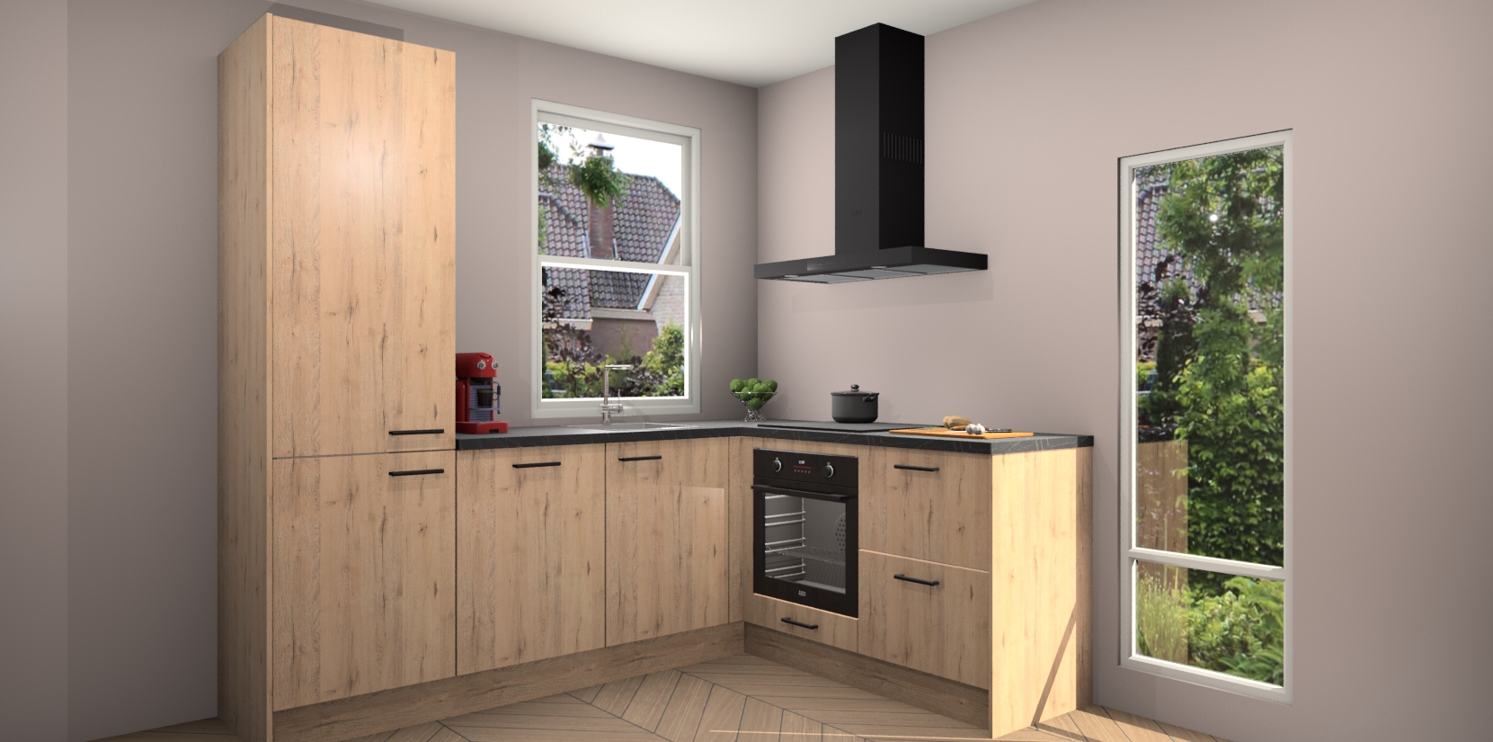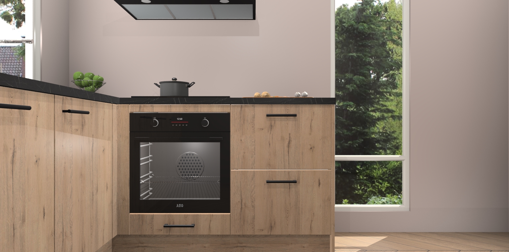 De Madera Natuur keuken Phuket heeft alles wat u maar kunt wensen. Niet alleen zijn er softclose deuren, maar ook 5 ingebouwde apparaten: een oven, inductiekookplaat, afzuigkap, vaatwasser en koelkast - waarbij u later gemakkelijk naar het AEG merk, van inductiekookplaat naar kookplaat met geïntegreerde afzuiging of van oven naar combimagnetron kunt upgraden. Dat alles tegen een vast laag tarief! Bovendien geeft de Madera Natuur keuken Phuket supersnelle levering van 7 weken. Echt iets voor u als u er niet op wilt wachten om het resultaat te zien in eigen keuken!