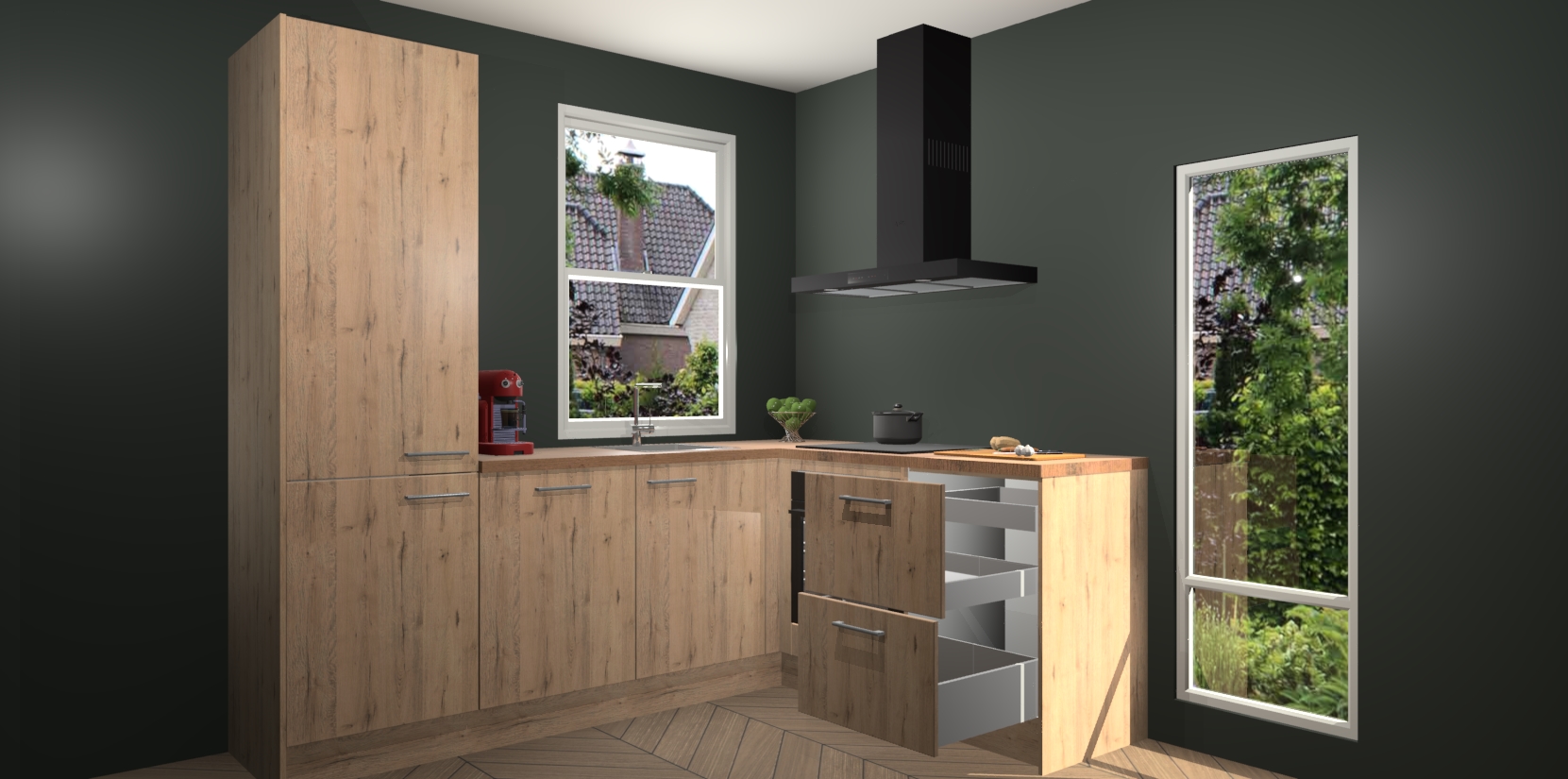 - Bij een hoekwerkblad zijn de hoeken in gevreesd en op maat gemaakt