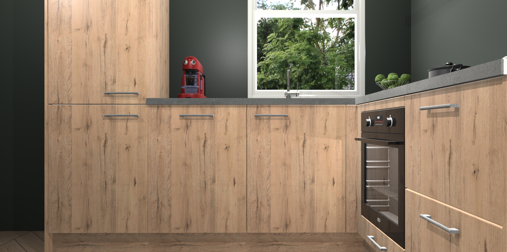 De prachtige Madera Natuur keuken Phuket is de perfecte keuze als u op zoek bent naar een moderne hoekkeuken met alle luxe en comfort die u kunt verwachten! De uitstraling in het houtlook-design draagt bij aan de warme sfeer die u nu al voelt wanneer u er naar kijkt. Heeft u genoeg van ouderwetse keukens? Probeer dan direct deze moderne, mooie hoekkeukens en laat iedereen verbluft achter!
