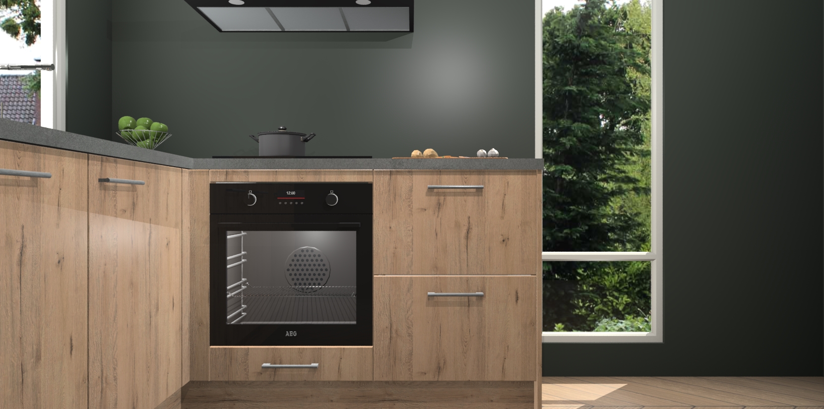 De Madera Natuur keuken Phuket heeft alles wat u maar kunt wensen. Niet alleen zijn er softclose deuren, maar ook 5 ingebouwde apparaten: een oven, inductiekookplaat, afzuigkap, vaatwasser en koelkast - waarbij u later gemakkelijk naar het AEG merk, van inductiekookplaat naar kookplaat met geïntegreerde afzuiging of van oven naar combimagnetron kunt upgraden. Dat alles tegen een vast laag tarief! Bovendien geeft de Madera Natuur keuken Phuket supersnelle levering van 7 weken. Echt iets voor u als u er niet op wilt wachten om het resultaat te zien in eigen keuken!