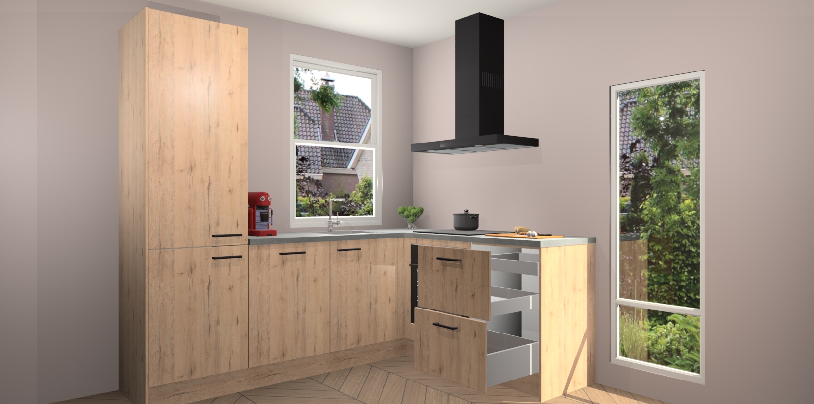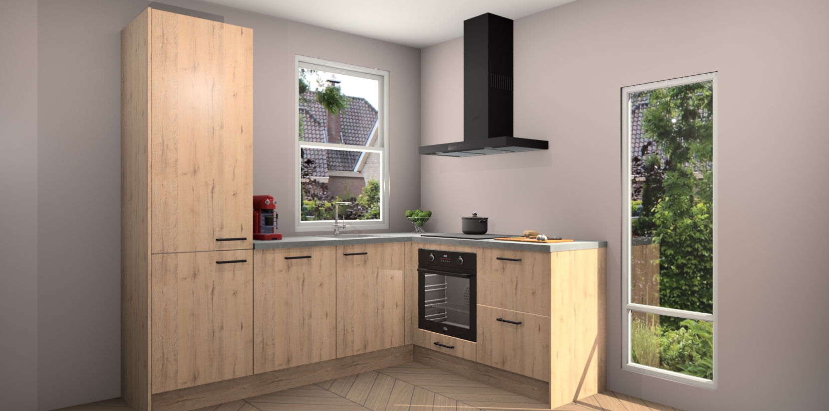 De prachtige Madera Natuur keuken Phuket is de perfecte keuze als u op zoek bent naar een moderne hoekkeuken met alle luxe en comfort die u kunt verwachten! De uitstraling in het houtlook-design draagt bij aan de warme sfeer die u nu al voelt wanneer u er naar kijkt. Heeft u genoeg van ouderwetse keukens? Probeer dan direct deze moderne, mooie hoekkeukens en laat iedereen verbluft achter!