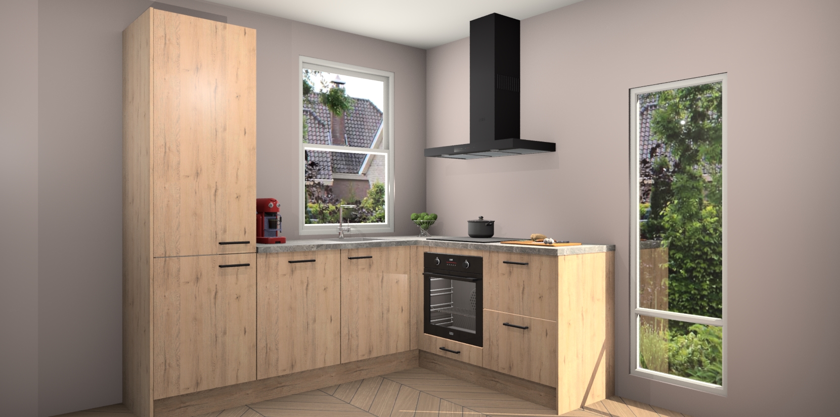 De prachtige Madera Natuur keuken Phuket is de perfecte keuze als u op zoek bent naar een moderne hoekkeuken met alle luxe en comfort die u kunt verwachten! De uitstraling in het houtlook-design draagt bij aan de warme sfeer die u nu al voelt wanneer u er naar kijkt. Heeft u genoeg van ouderwetse keukens? Probeer dan direct deze moderne, mooie hoekkeukens en laat iedereen verbluft achter!