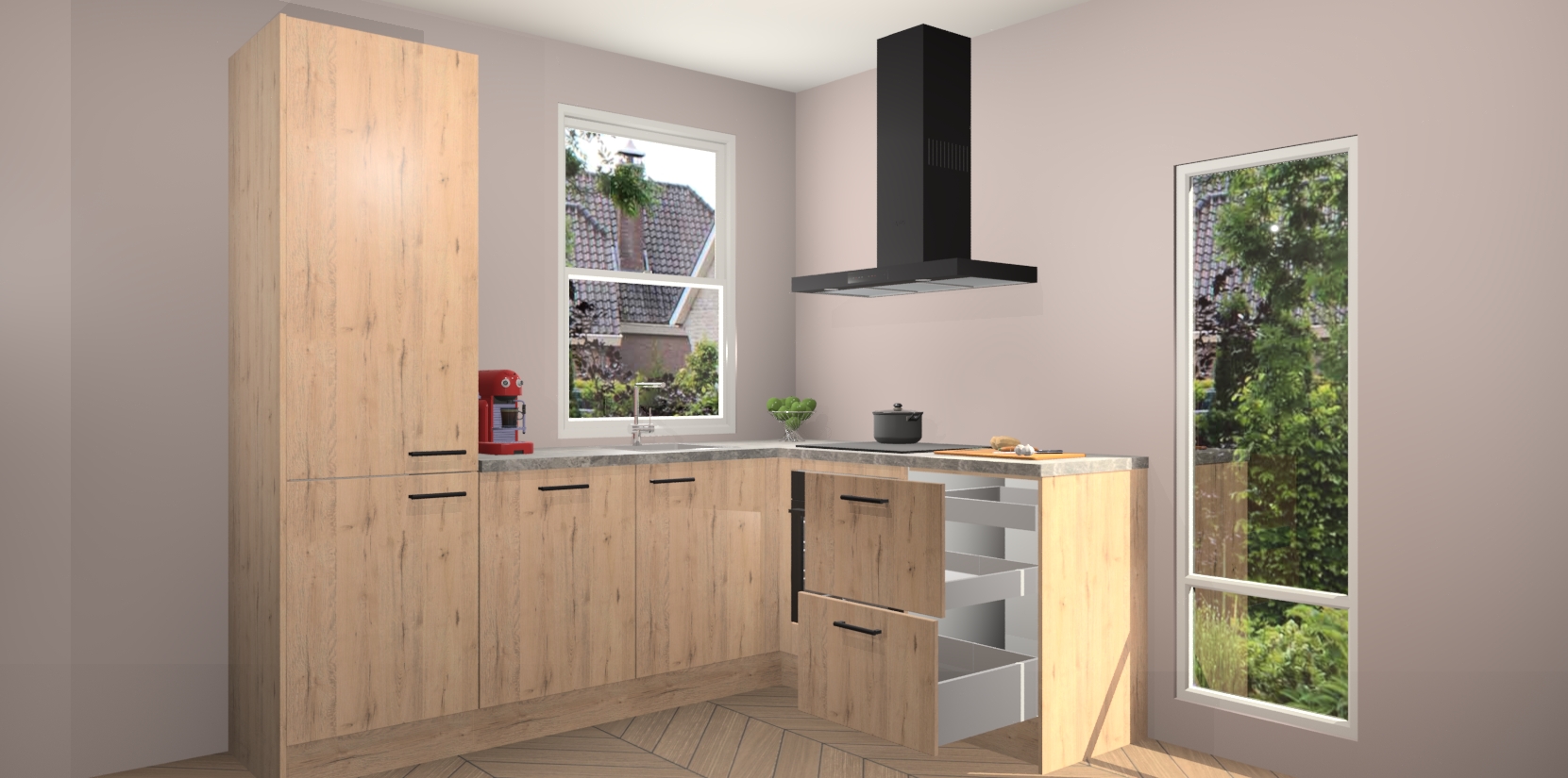 - Bij een hoekwerkblad zijn de hoeken in gevreesd en op maat gemaakt