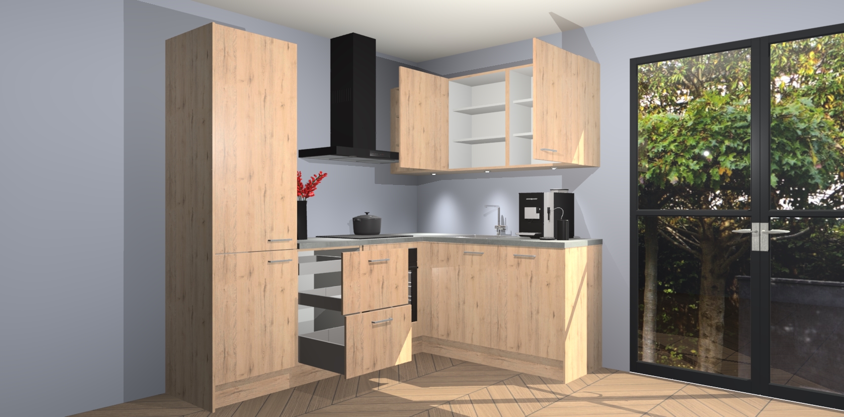 Wauw, dit is de Madera Natuur keuken Pilsen! U kunt gerust zeggen dat u elegantie combineert met functionaliteit met deze keuken. Met een modern en chique ontwerp is de keuken precies wat u nodig heeft om uw ruimte te verfraaien. De binnenzijde van de kasten is in dezelfde donkere kleur als de buitenzijde voor een uniforme look, compleet met softclose-kasten die stil sluiten.