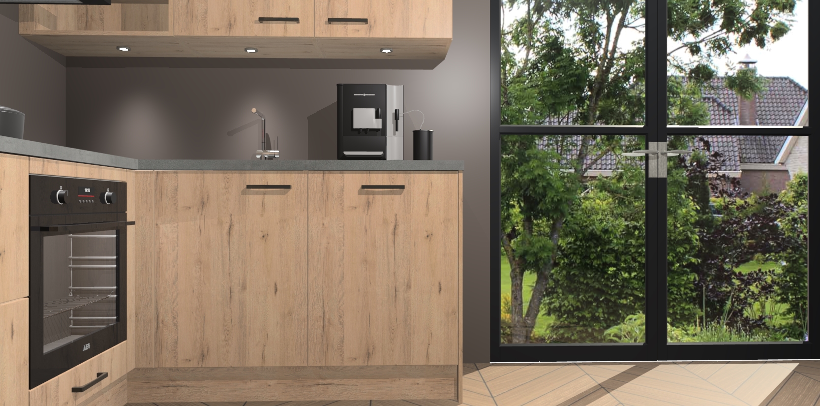 Wauw, dit is de Madera Natuur keuken Pilsen! U kunt gerust zeggen dat u elegantie combineert met functionaliteit met deze keuken. Met een modern en chique ontwerp is de keuken precies wat u nodig heeft om uw ruimte te verfraaien. De binnenzijde van de kasten is in dezelfde donkere kleur als de buitenzijde voor een uniforme look, compleet met softclose-kasten die stil sluiten.
