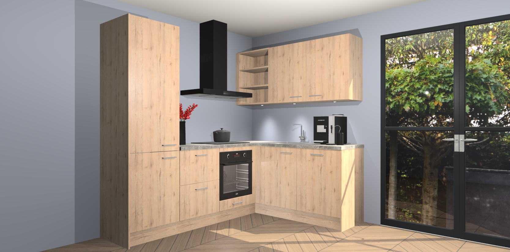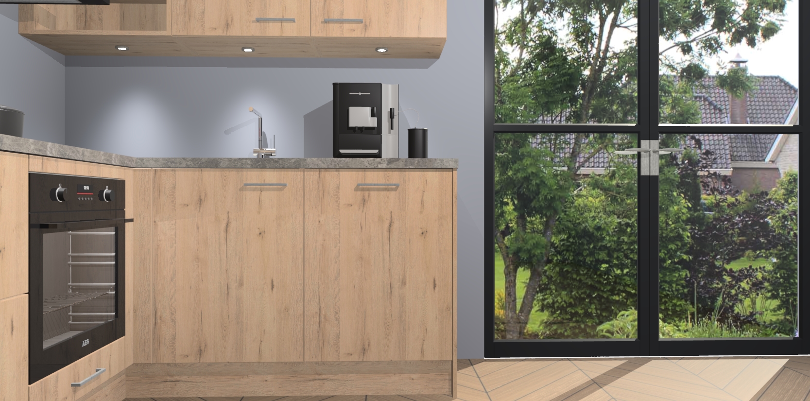 Wauw, dit is de Madera Natuur keuken Pilsen! U kunt gerust zeggen dat u elegantie combineert met functionaliteit met deze keuken. Met een modern en chique ontwerp is de keuken precies wat u nodig heeft om uw ruimte te verfraaien. De binnenzijde van de kasten is in dezelfde donkere kleur als de buitenzijde voor een uniforme look, compleet met softclose-kasten die stil sluiten.